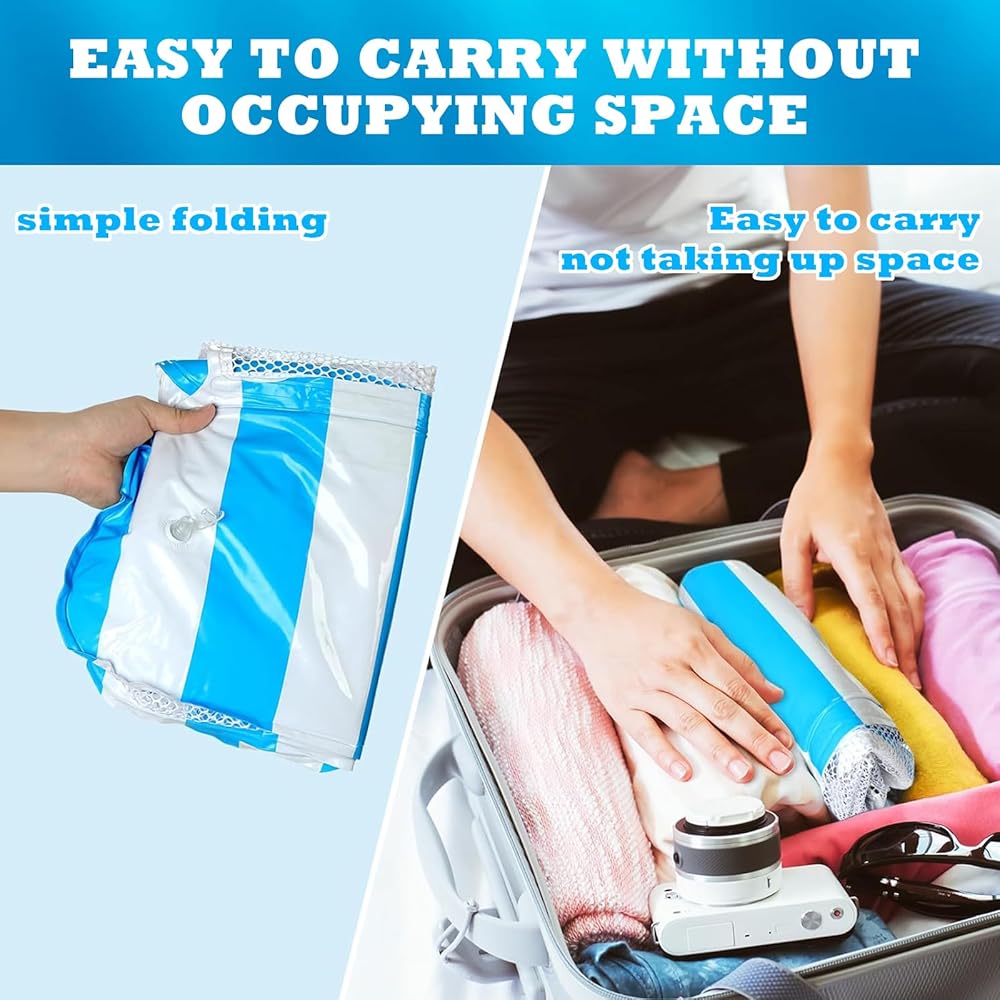 PORTABLE: The swimming pool float can be laid flat, deflated, and folded, making pool floats adult easy to carry and use. Inflates quickly, easily, and quickly via the quick valve. Beach floats can be carried and stored in backpacks and suitcases without taking up space.