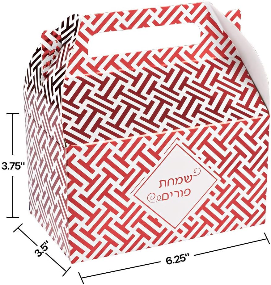PREMIUM QUALITY: These premium quality foil purim treat boxes come in a selection of bright, vibrant colors; they are made of sturdy paper, it is the perfect box for merchandise gifts and party favors LONG-LASTING BOXES: This pack of 10 combining durability with posh elegance, made with strong paper and are very easy to assemble; these thick treat boxes are one of the most popular choices among gift shops, bookstores, boutiques, jewelry shops and other places EASY TO USE: Made out of a lightweight cardboard paper material, DIY ready solid treat box for arts & crafts; use them to give homemade cookies and treats to your kids, friends, neighbors and family and rest assured that they will love them! MULTIPURPOSE: These gift boxes are assured to impress your love one; these wonderful treat boxes have normal size, great for any occasion, giving gifts, wedding, birthdays, baby showers, anniversaries, holidays, graduations, promotions etc. SATISFACTION GUARANTEED: We are confident you will love our Foil Purim Treat Box. You can be confident in buying it. All Hammont products made of best materials, at the most reasonable prices for our customers!