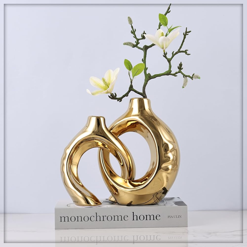 [High-Quality Ceramic Vases]: Made from premium ceramic material, Elegant Vase Set of 2, making them an ideal choice for showcasing your favorite flowers and enhancing your home décor.