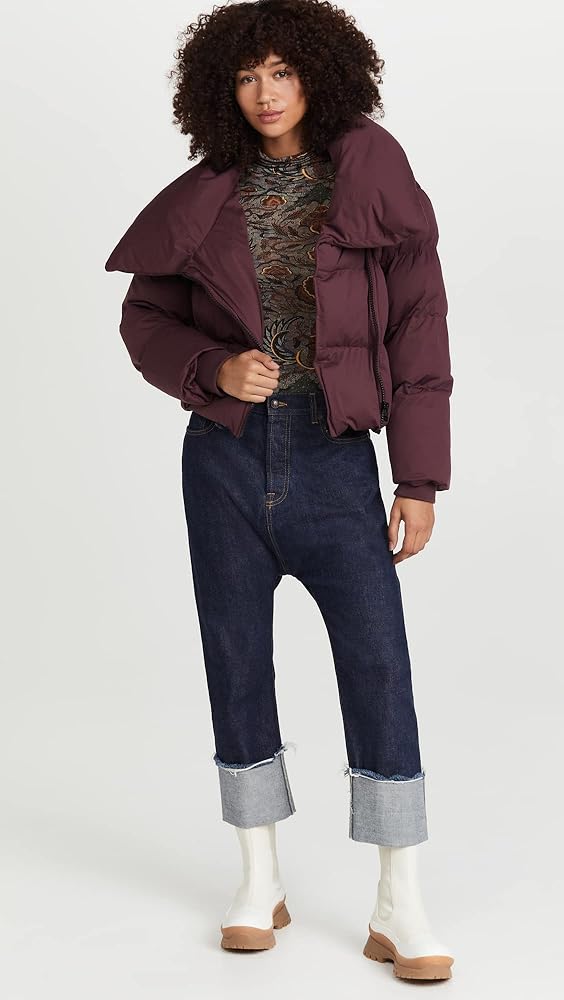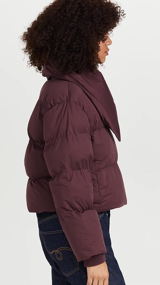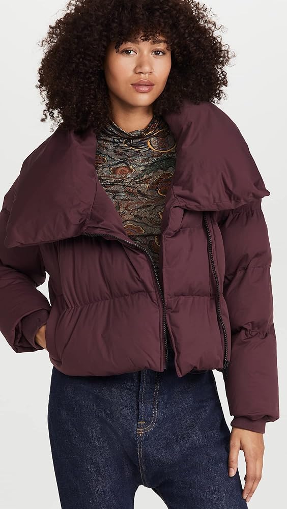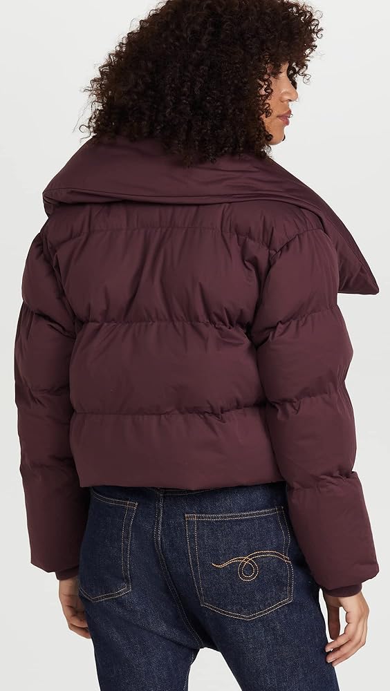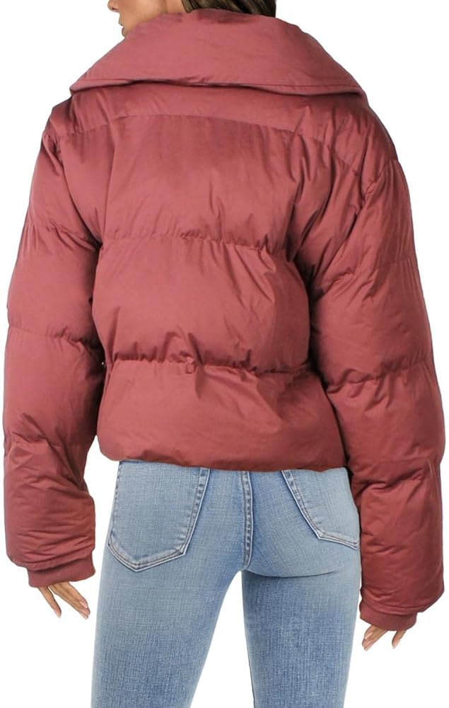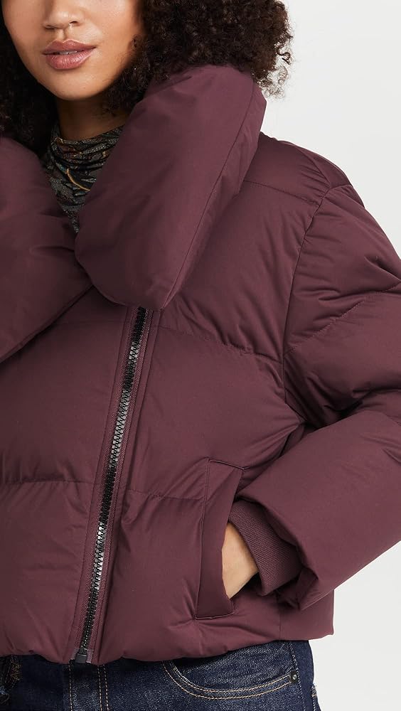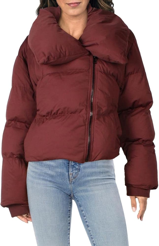 Don't sacrifice warmth or style in this cropped puffer coat by Avec Les Filles. Made with 100% Polyester with 100% cotton lining. This chic design is features a stand collar, welt pockets and ribbed knit cuffs with an assymmetrical zip closure. Dry clean only.
