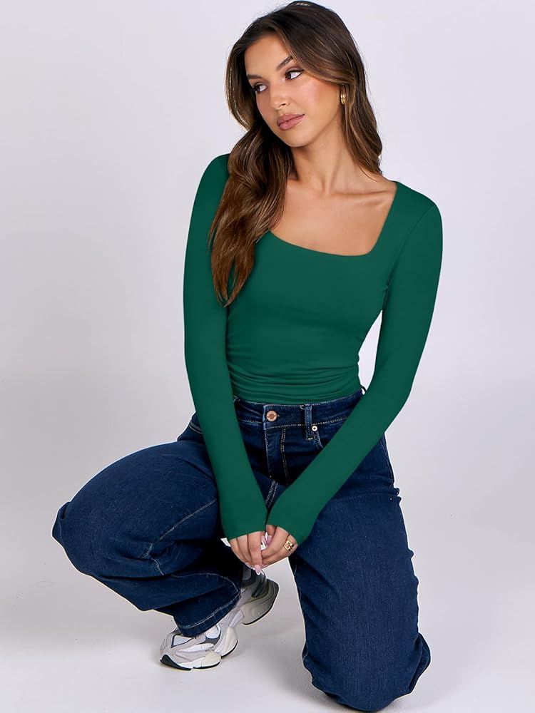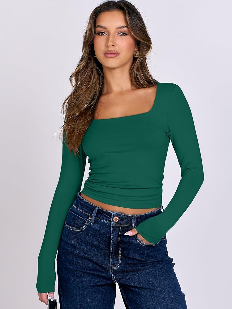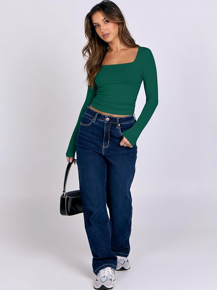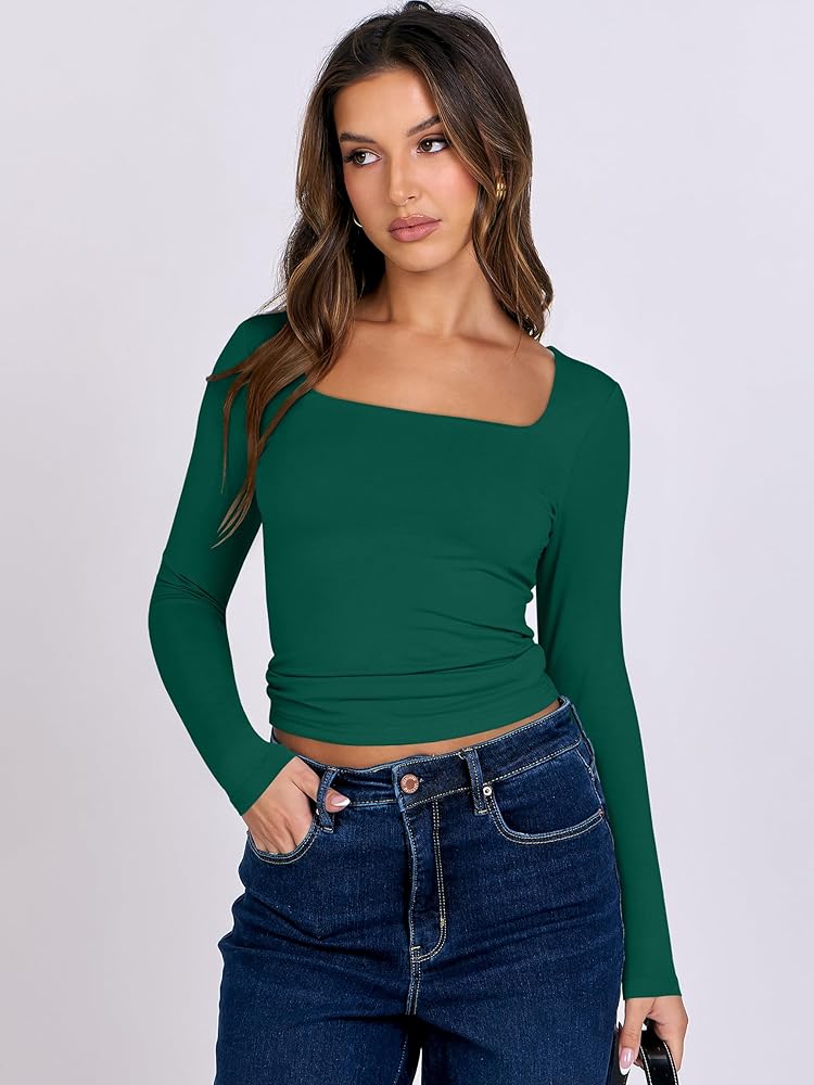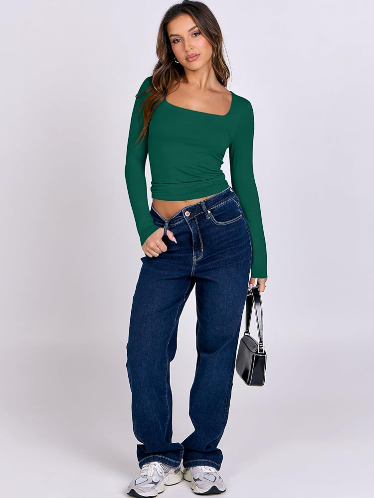 Features - The crop top for women features a trendy sweetheart Neck, long sleeves, tight fit, Y2K styles. Whether you're lounging at home or hitting the beach, our shirts are perfect for any casual or leisure activity.