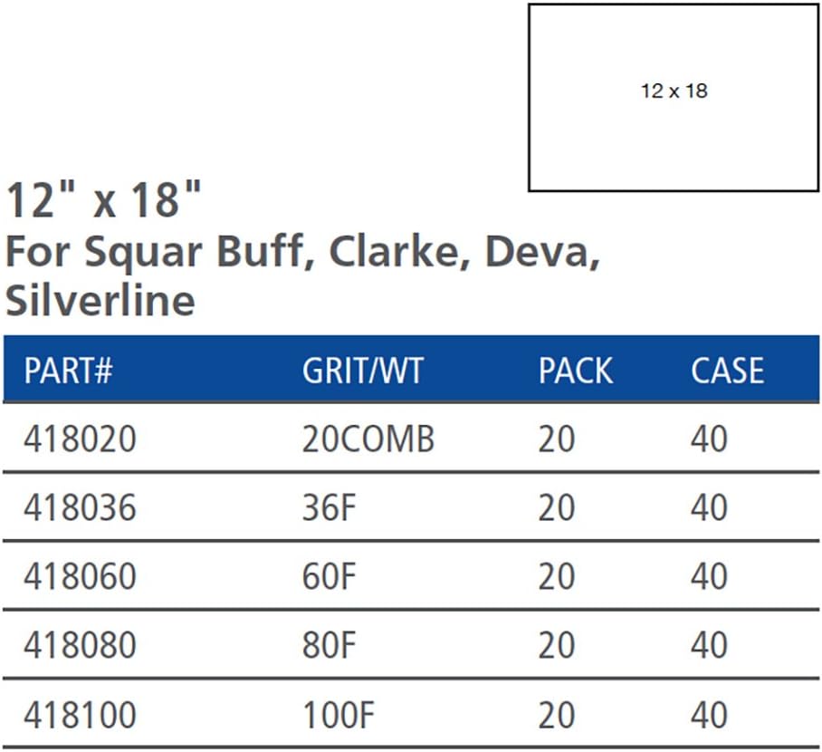 20 - Precut sheets for any 12" x 18" buffer - square buff, Clarke, deva, silver line. For hardwood or concrete