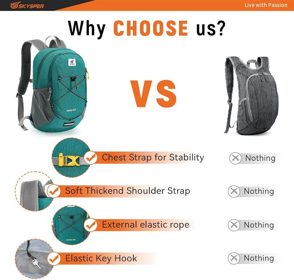 Lightweight & longlasting: Constructed from high-quality materials, the 20L foldable back pack is both lightweight and durable. It withstands rugged use while keeping you light on your feet, making it an ideal choice for any adventure.