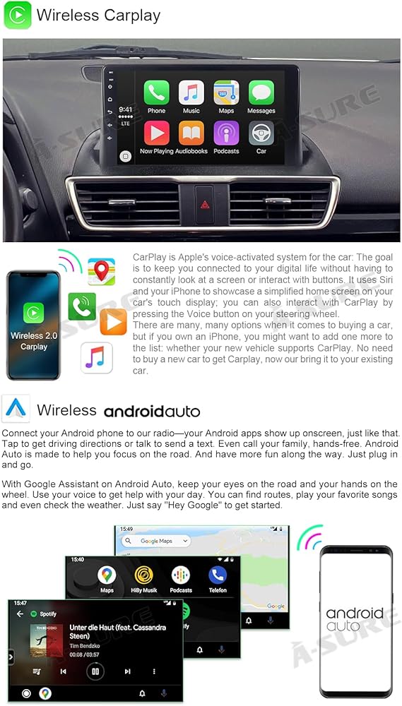 【Wireless and Wired CarPlay & Android auto】Wireless connected with Bluetooth,click Car-Link icon to start CarPlay or Android Auto function or back to main page(Compatible with iPhone 5 and later,Android phone 11.0 and later), Wired contected with the 6 pin USB cable,very convenient to operate,free your hands,easily use GPS navigation, calls, message, music and more functions while focusing on road safety