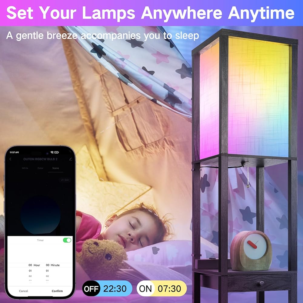 ✔ 【Easy to Assemble & Sturdy】:The led standing floor lamp is equipped with an installation guide and user manual. You can get our lamp assembly done within 10 minutes. It weighs only 12.1 lbs which makes you obviously carry it in your hands. Tough and sturdy, you can place anything on each shelf without worrying about wobbling. The lamp has a 9.5 feet cord and you can move it around in a room. Comes with Plastic Clips, to help tuck the power cord away making for a neat-looking product overall.