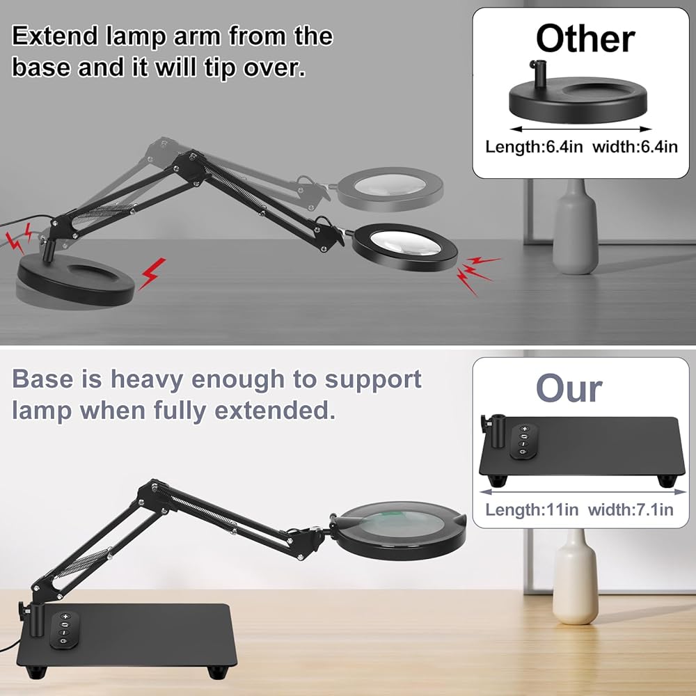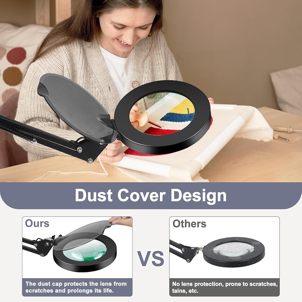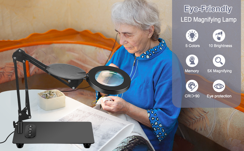 【5 Color Modes & Stepless Dimmable】Great For A Variety Of Lighting Needs. Features 10 Levels Of Brightness, 5 Different Lighting Modes.Brighten your workspace with our Super Bright Lighting desktop magnifying glasses.