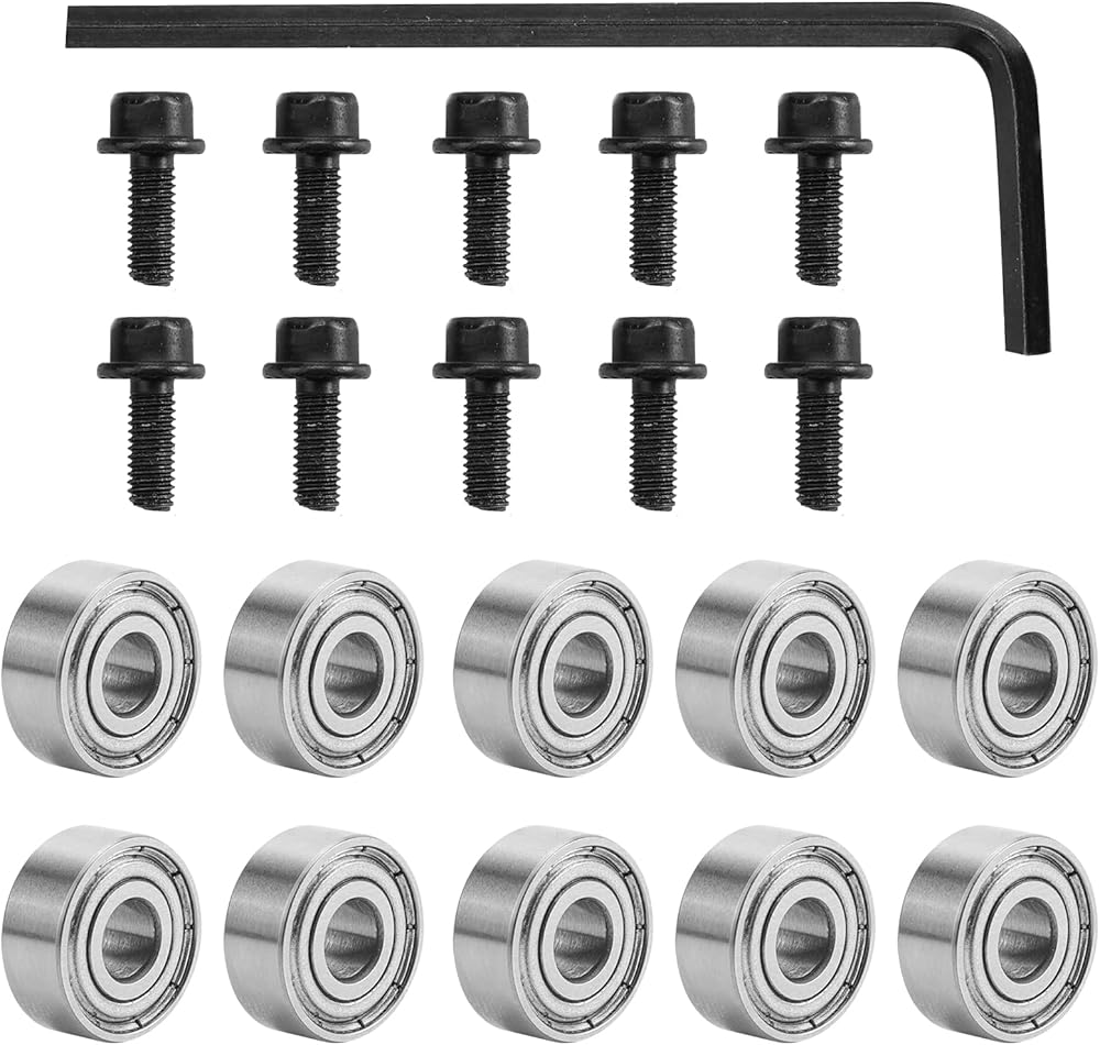 [Package include ] Top mounted router bit bearings, interior diameter: 3/16”, outer diameter: 3/8” 10Pcs Router Bit Bearing Set The bearing repair kit contains all necessary bearings, set screws and hex wrenches to replace or repair most damaged or missing router bit bearings
