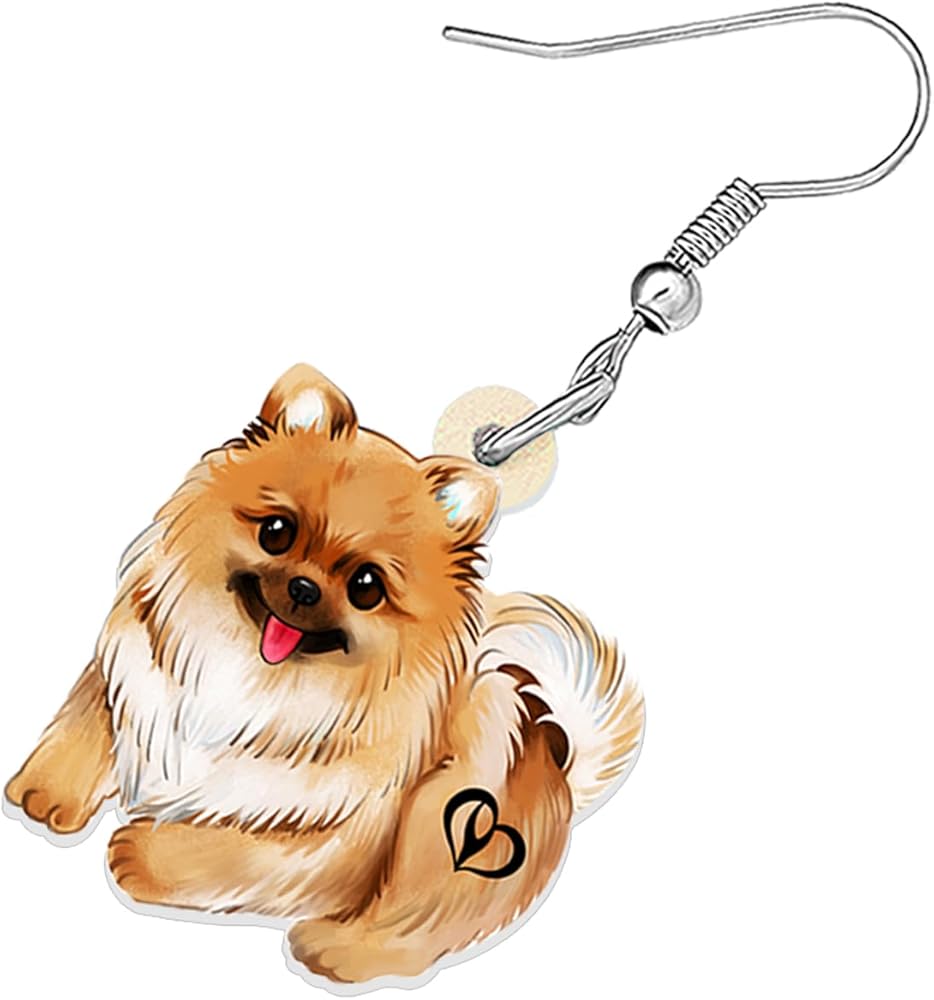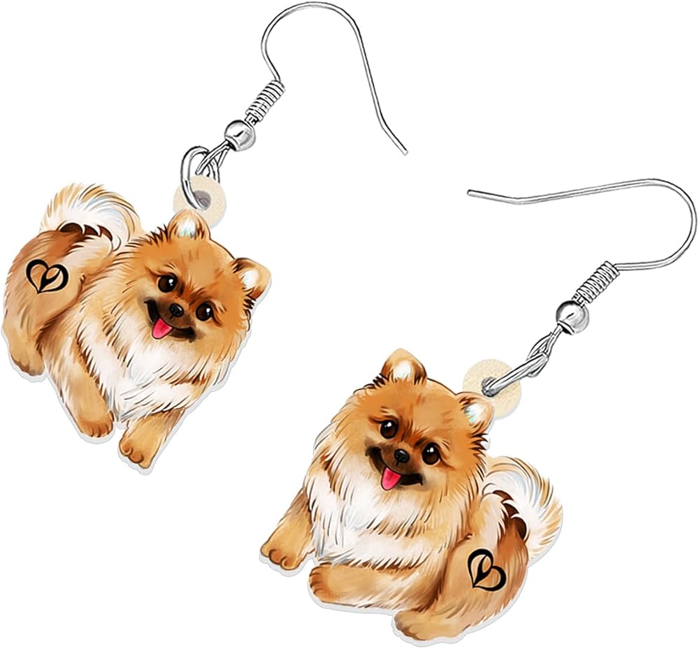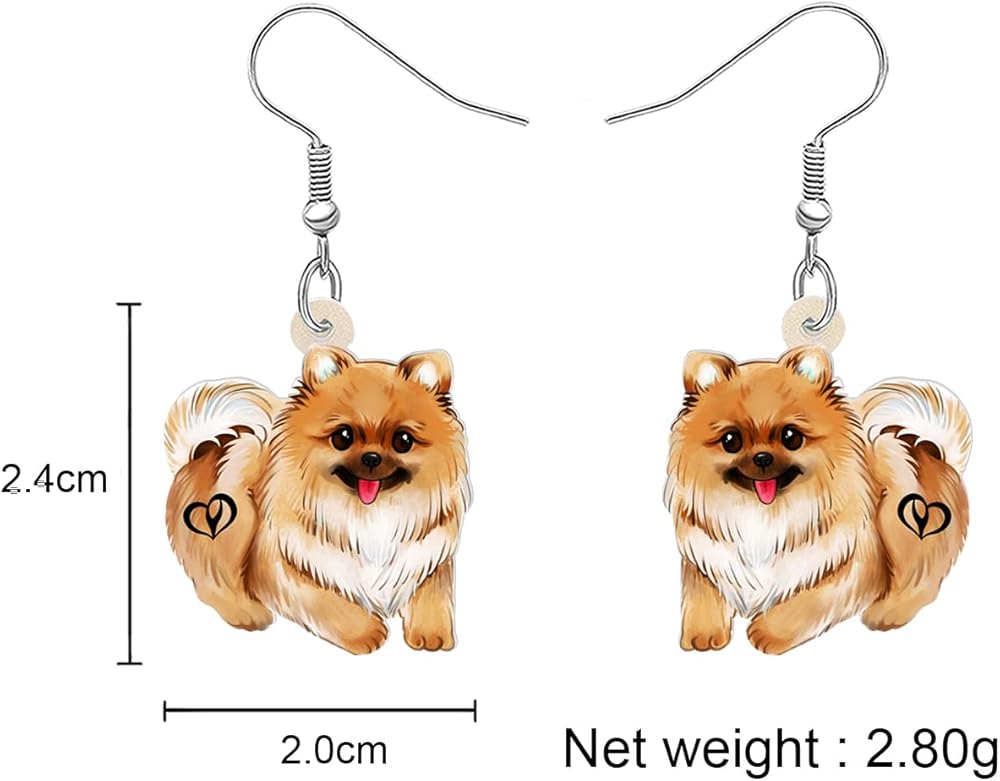 The Pomeranian earrings are made of acrylic material, light weight, stainless steel ear hook, and comfortable to wear