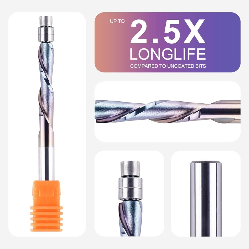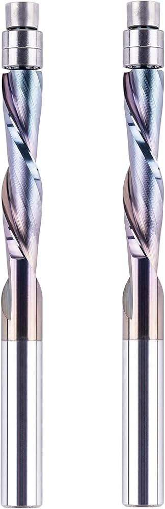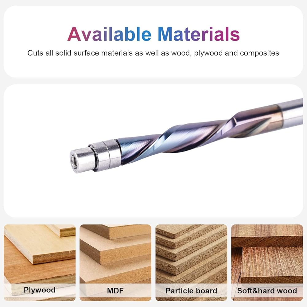 COMPATIBILITY. The spiral flush trim Router Bits is perfect for soft woods, hard woods, Plywood, laminate, OAK, MDF and any hardwood working. It can be used with table mount and handheld router with 1/4" collet