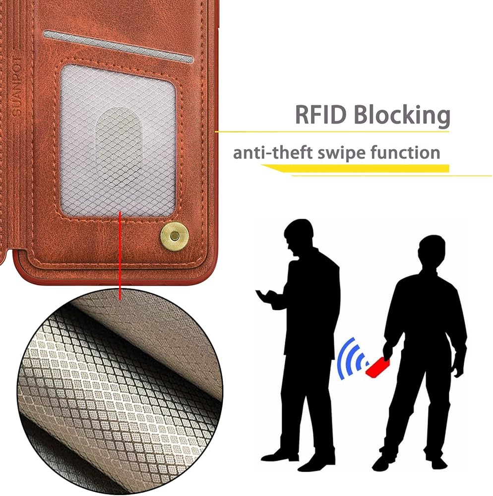 [Credit card anti-theft swipe function]---This leather wallet case for Samsung Galaxy S8+ is designed to protect your cards information from stealing with blocking material of RFID shielding technology,Most Credit Cards, Debit Cards, ID Cards are set-in the RFID chip, the RFID reader can easily read the cards information within 10 feet(about 3m) without touching them.