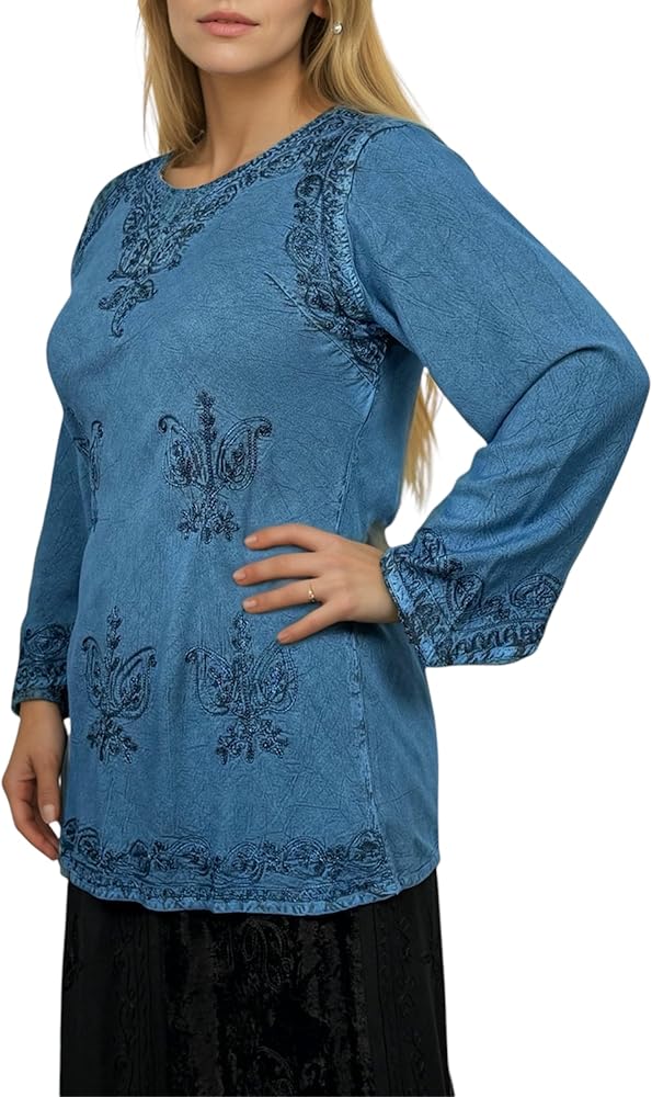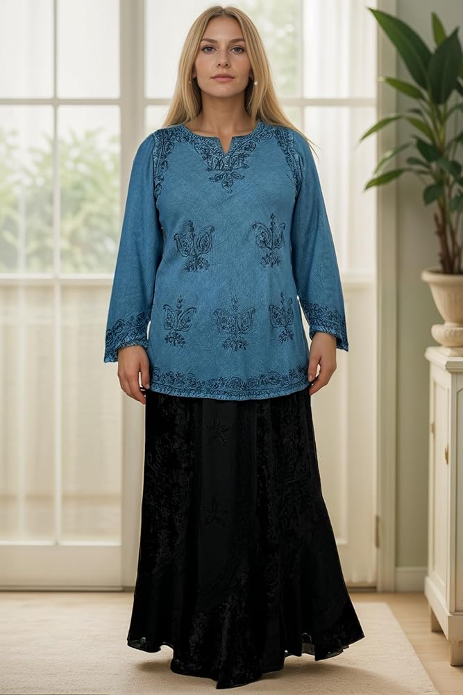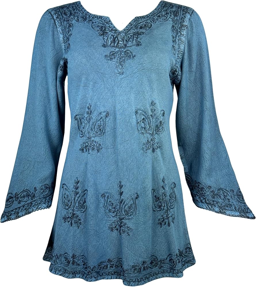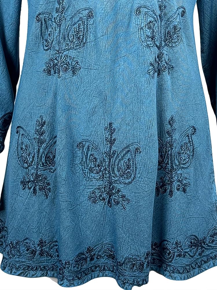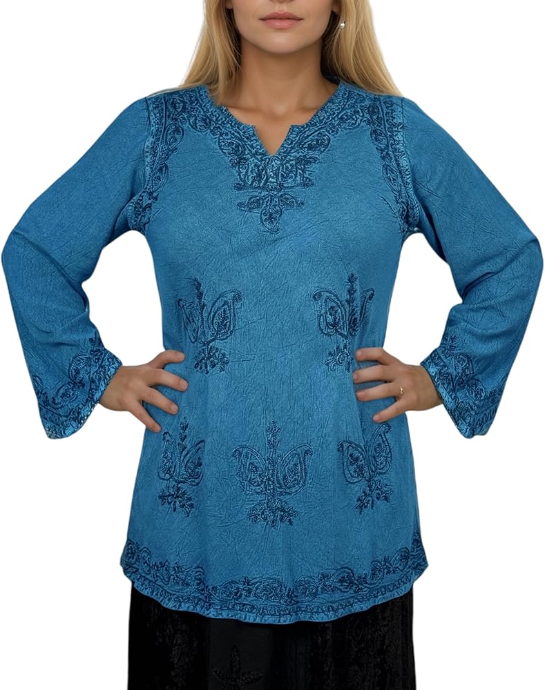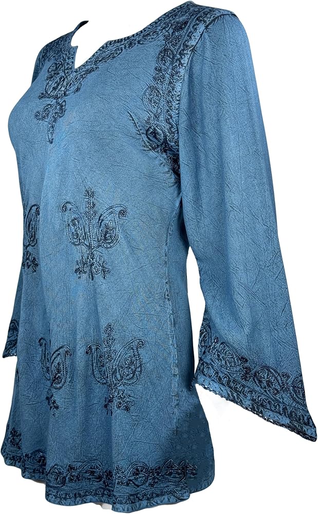 Vintage Style: Featuring a vintage style characterized by elegant and classic aesthetics. Agan Traders bohemian tops for women has a V-Neckline for a feminine and timeless look. The ¾ sleeve length provides added coverage, allowing for easy mobility, adding a touch of bohemian style to our embroidered tops.