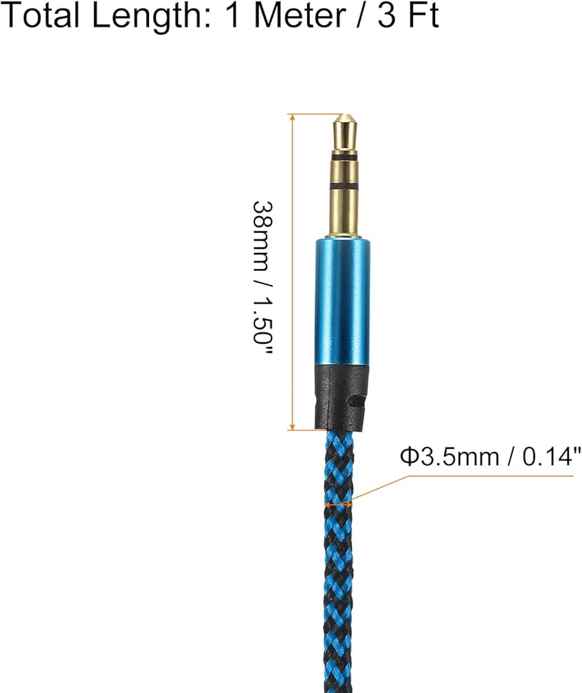 TRS: 3 Pole; Color: Orange Gold; Wire Diameter: 3.5mm / 0.14"; Total Length: 1 Meter / 3 Ft; Plug: 3.5mm x 38mm / 0.14" x 1.50" (D*L).