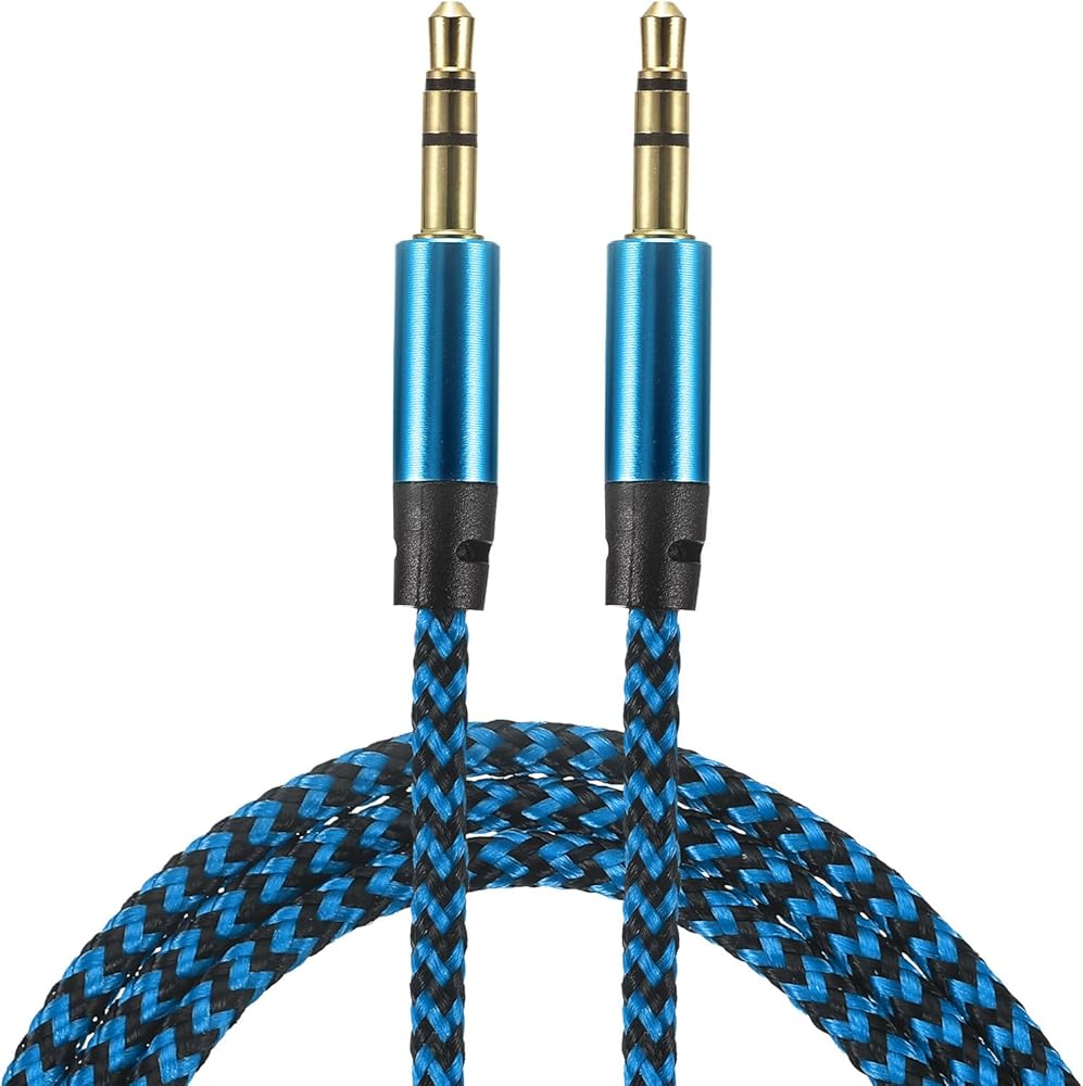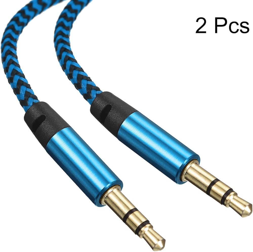 MECCANIXITY 2 Pack Aux Cable 3.5mm Male to Male Nylon Braided 3Ft 3 Pole Hi-Fi Stereo Sound Auxiliary Cord Blue for Earphones, Smart Phones, Home/Car Stereos, Speakers, Computers