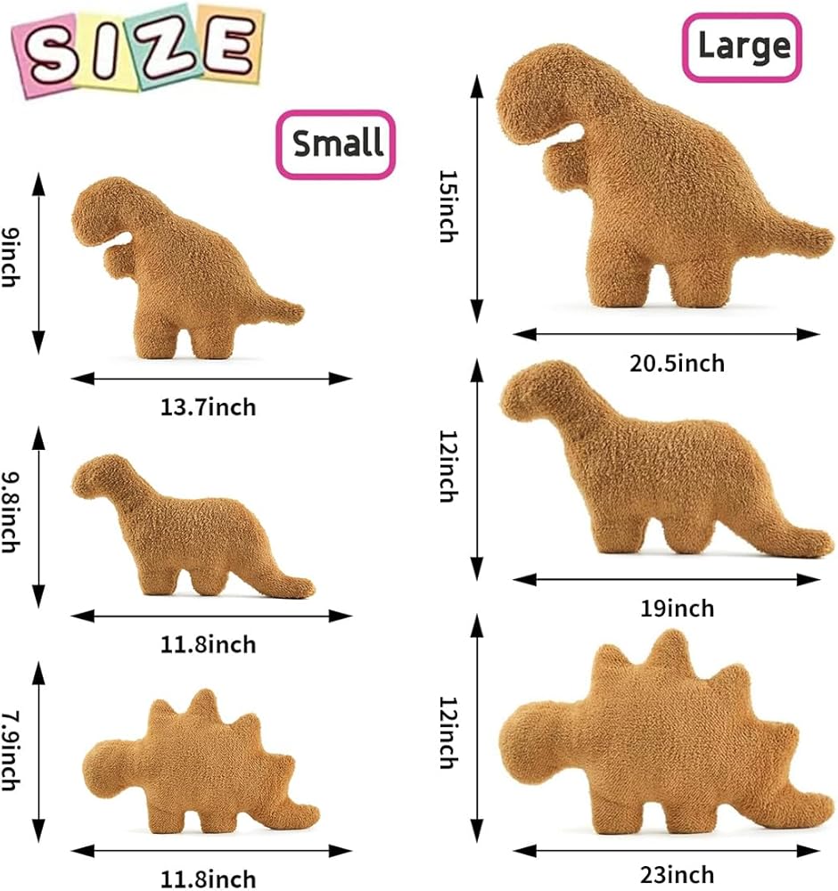 【Easy to Carry】We have three styles to choose from Stegosaurus, Brontosaurus, Tyran Rex. The size is about 30cm/11.8inch and 19.7 in/50 cm. The dinosaur nugget pillow is lightweight and soft. Not only suitable for children, but also for adults. You can carry this dino nugget pillow to every where.