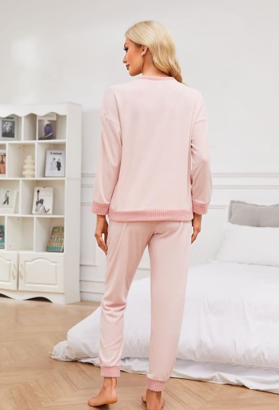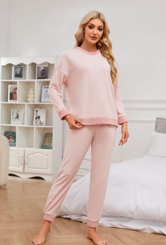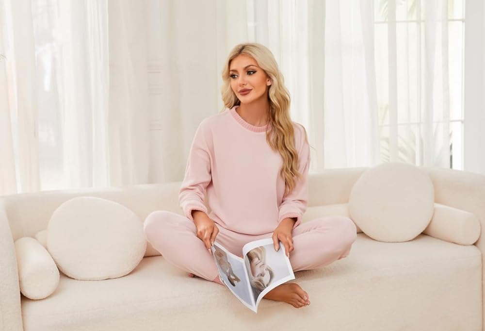 🎁Sumptuously Soft Fleece: Crafted from premium lightweight fleece fabric, our long-sleeved pajamas with jogger pants ensure unparalleled warmth without bulk. With its irresistibly soft feel, it's perfect for all seasons. This loungewear set is perfect for shopping outside, working out, sports.