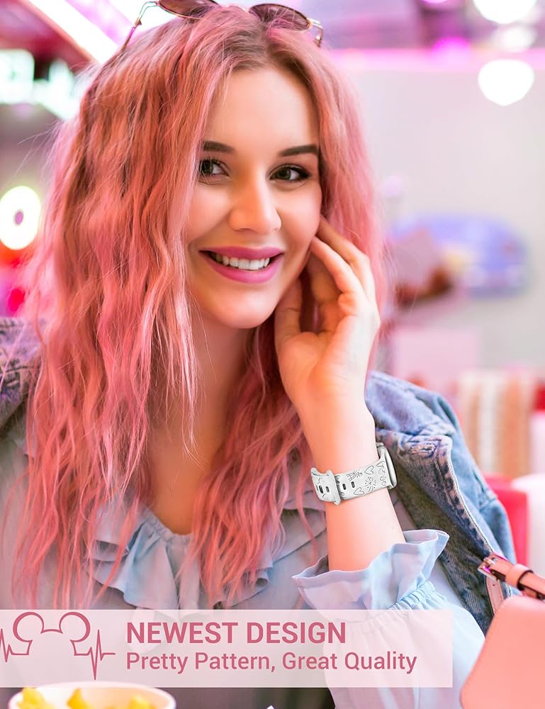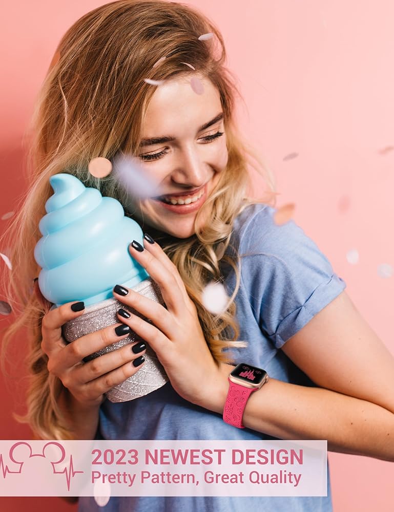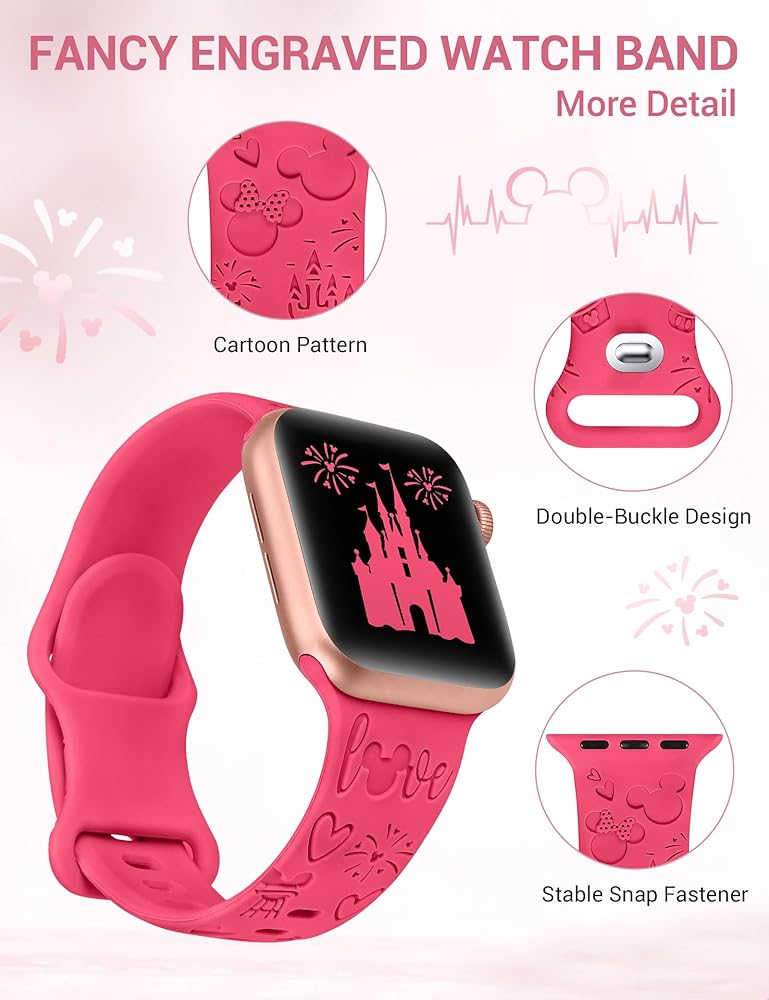 ✴️【Exquisite Craftsmanship】These fancy feminine compatible with engraved apple watch bands are made of skin-friendly silicone material, which are soft, comfortable and durable. Using advanced cartoon printing and laser engraving, the cute cartoon designs remain vivid and do not fade over time. These lightweight and breathable bands are perfect for daily wear!