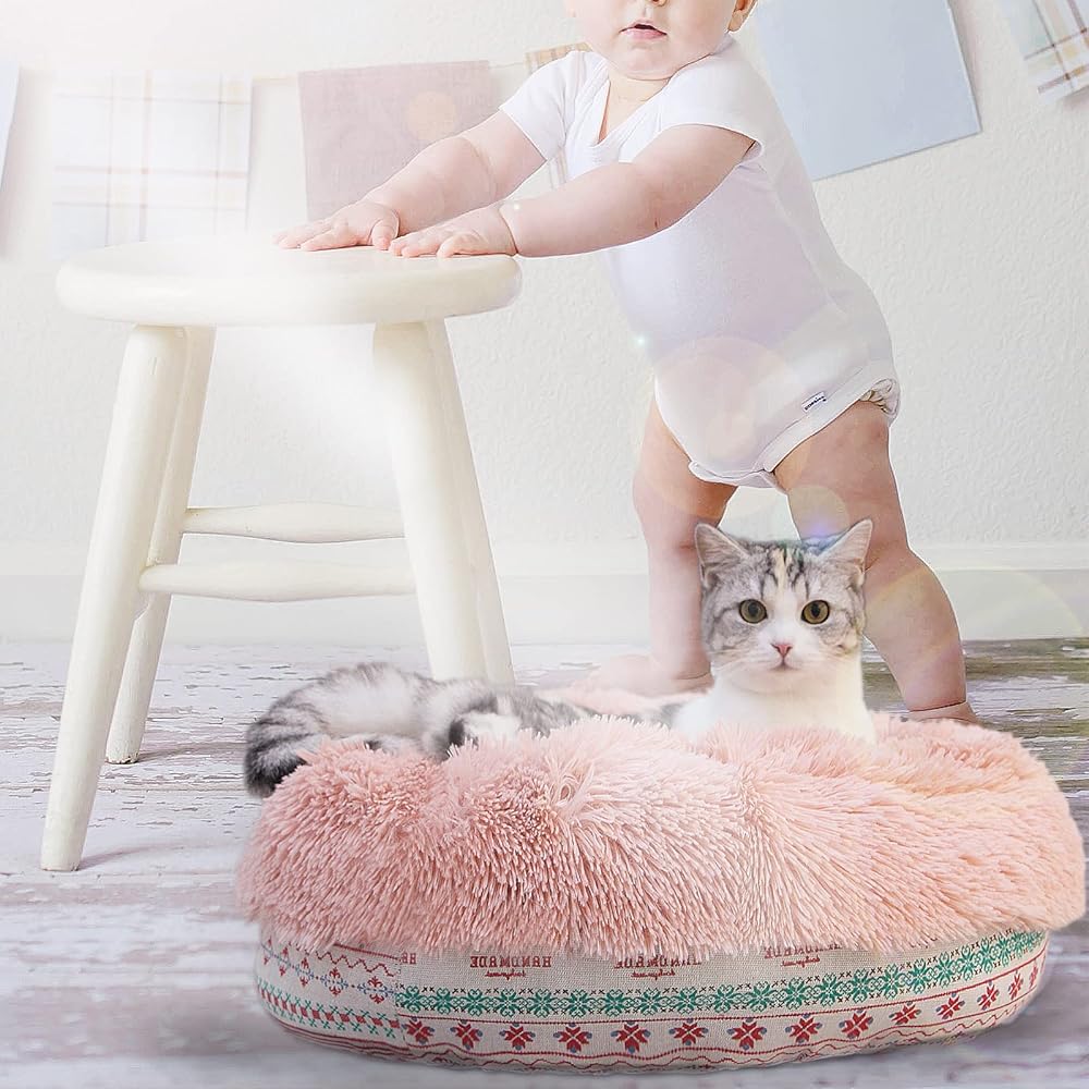 Puppy Beds for Small Dogs Washable19 Inches Pink Bohemian Style Deep Sleep Calming Pink Cute Dog Bed for Girls Beds for Pet Dog Beds Fits up to 10 lbs Pets Beds Machine Washable Dog Bed.