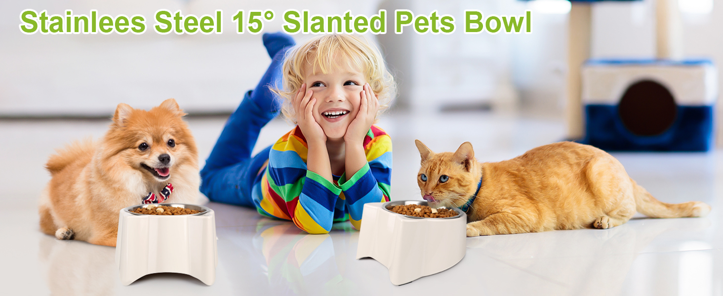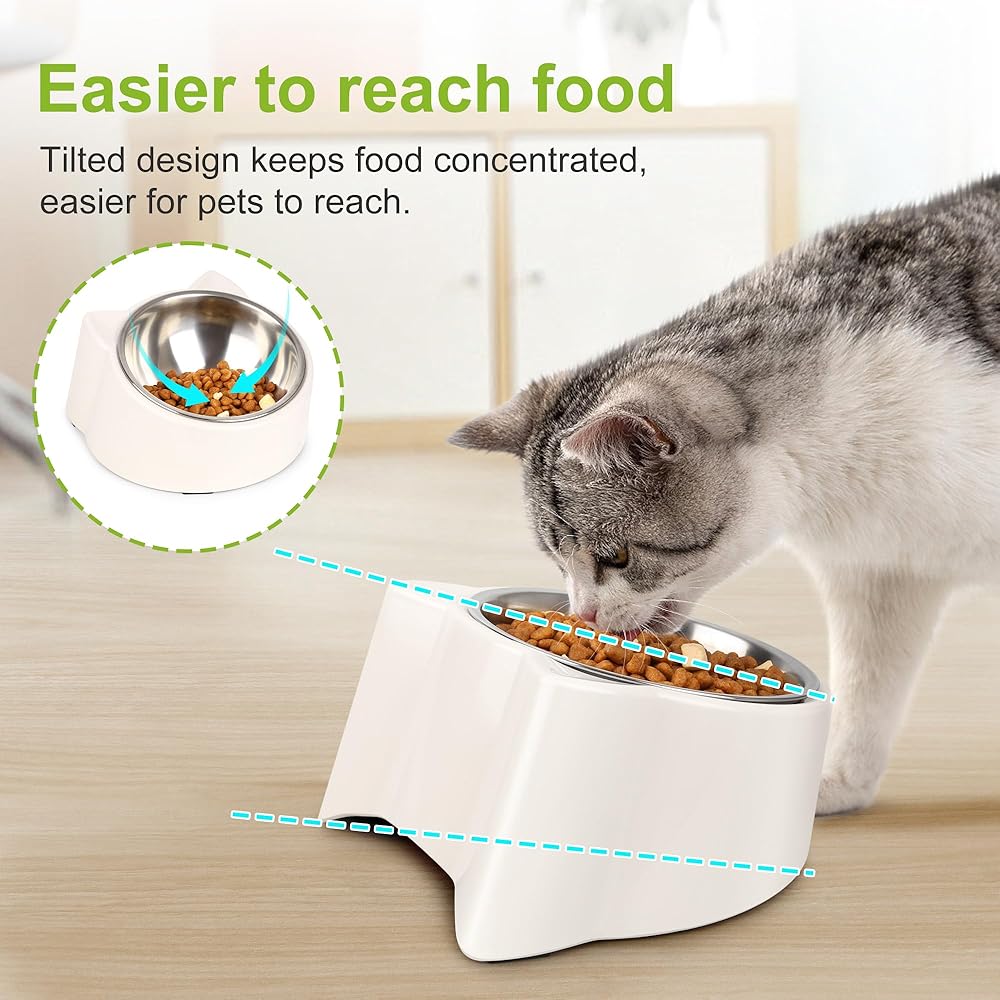 <TILTED DESIGN ELEVATED CAT BOWLS>15° tilt design of the bowl is suitable for cats to raise their heads, promoting better digestion and reducing neck strain.