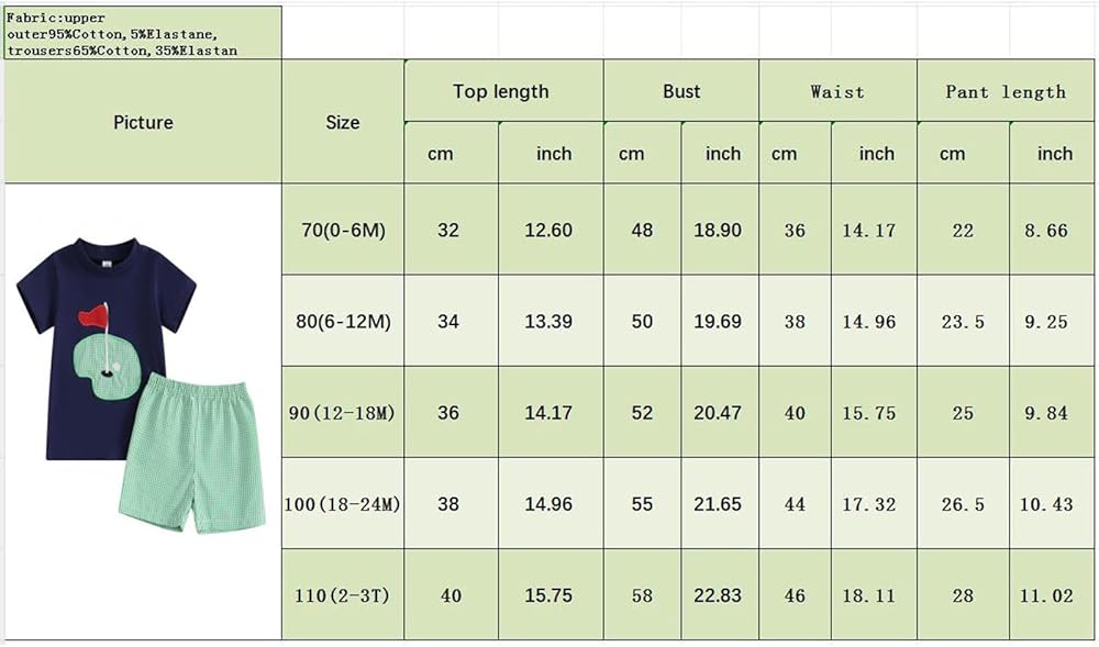 ⛳【Material】Baby golf outfit girl, baby golf outfit boy, the T-shirt is made of 95% cotton, 5% elastane, while the shorts are made of 65% cotton, 35% elastane material, no harm to toddler boys skin. 2pcs baby golf clothes, golf outfit for baby boy, daddy's little golf pro outfit, so cute!
