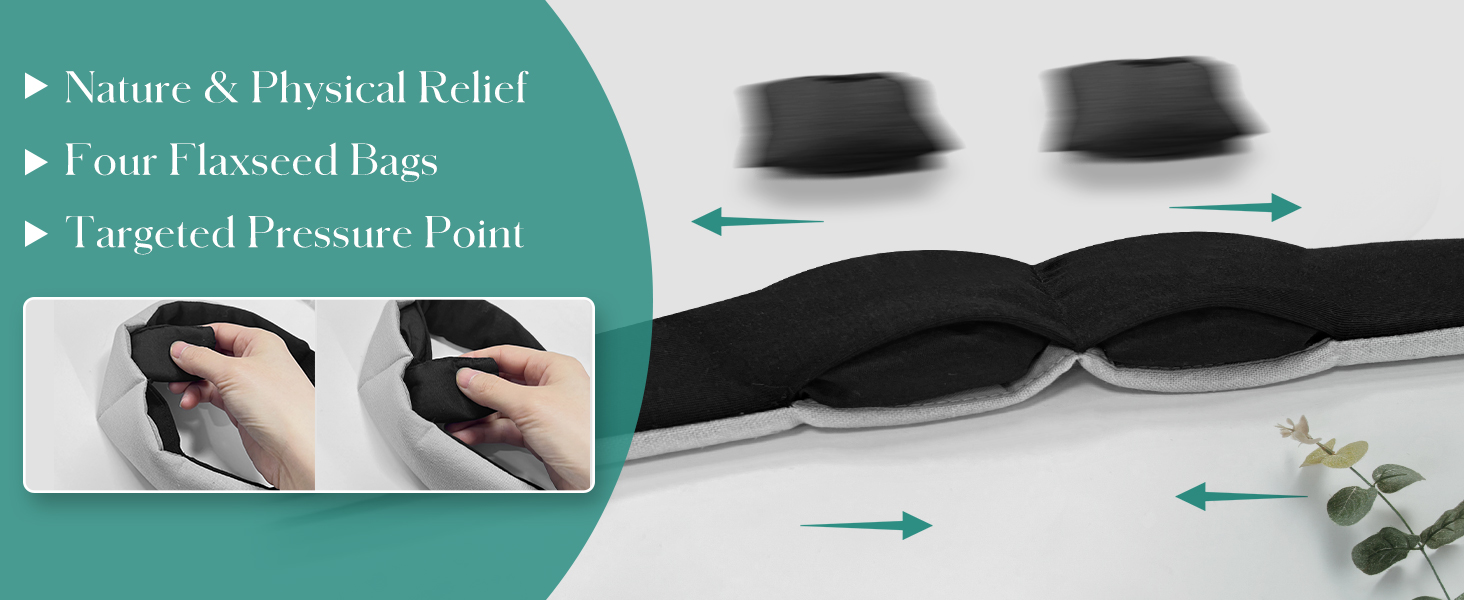 For Both Heat & Cold Compress: The eye mask can be used as a heated eye mask and a cold eye mask. The natural flaxseeds will provide moist heat and soothing coldness for the eyes. The special design will hold the heat and the cold for a sufficient time. Gentle pressure will be put on your eyes to make the heat and cold compress much more effective.