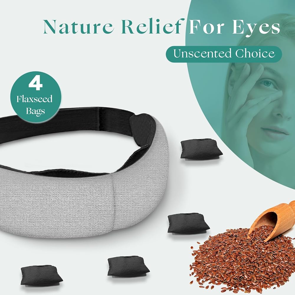 Natural Relief with Flaxseed: Each hot compress is filled with four premium flaxseed bags placed to contour the delicate curves of your eyes. Flaxseed's natural oils retain heat exceptionally well, offering gentle warmth to soothe tired, achy eyes, perfect for blepharitis, eye styes, and chalazion treatment.