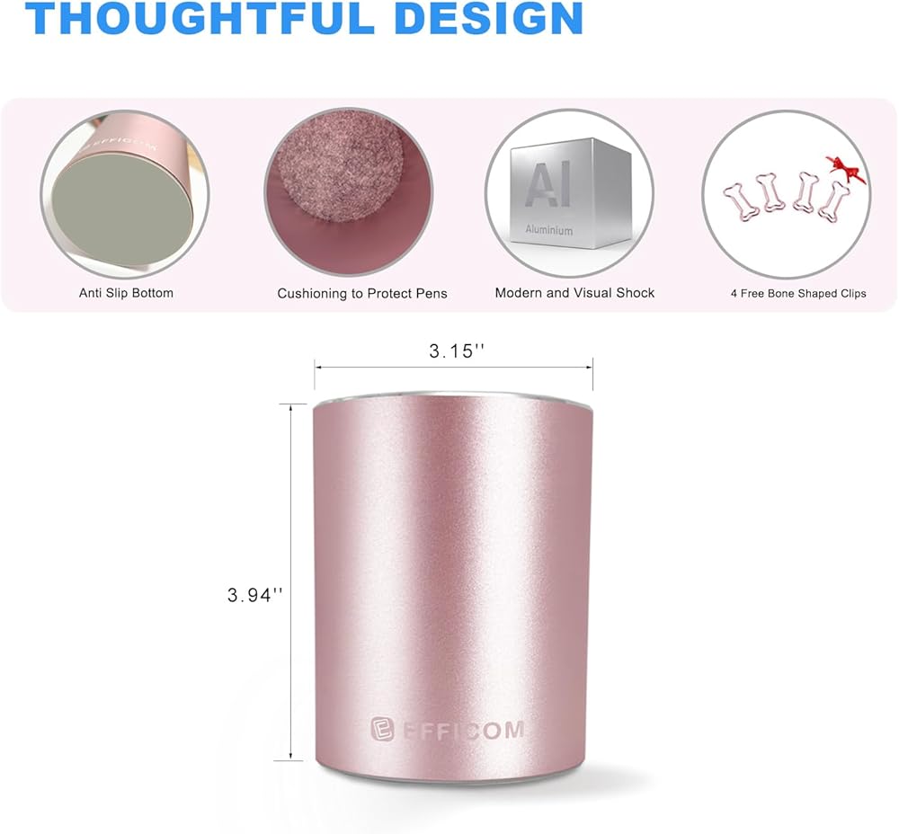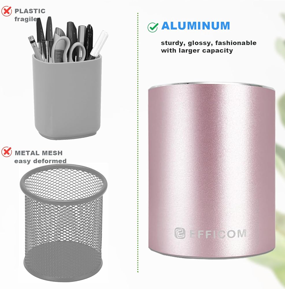 [Sturdy and Durable] This metal pen holder for desk is more sturdy and durable than plastic or wood pen holders. It has a large anti slip rubber pad at the bottom can protect desk suface. And interior has some cushioning to protect pens