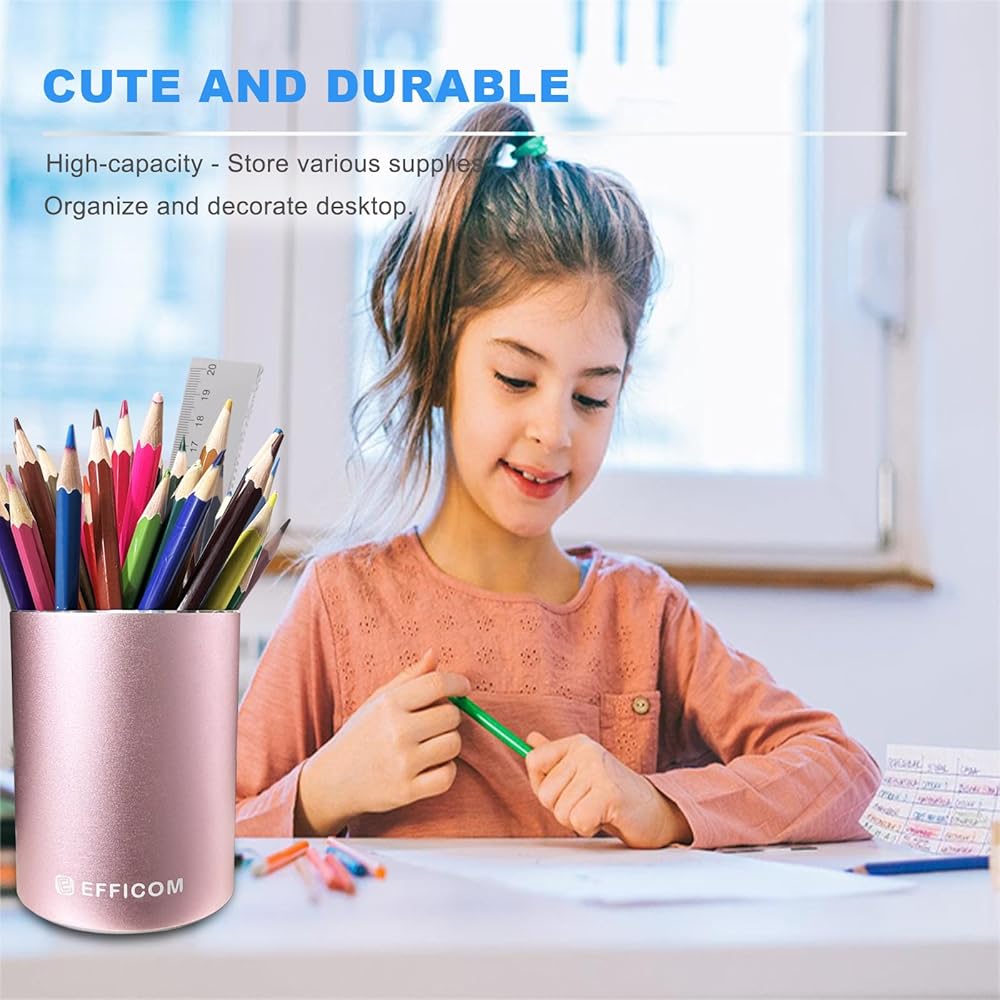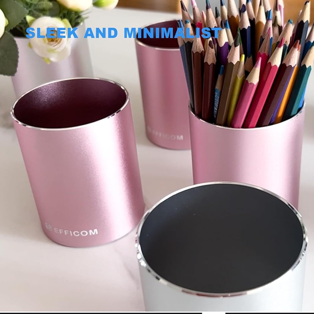[Well-made and Visual Shock] This cute pen cup is made of high-quality aluminum alloy and undergoes metal sanding, polishing, and CNC cutting processes, presenting you with a highly glossy, modern, and visually impactful product. Available in bright pink and silver colors.