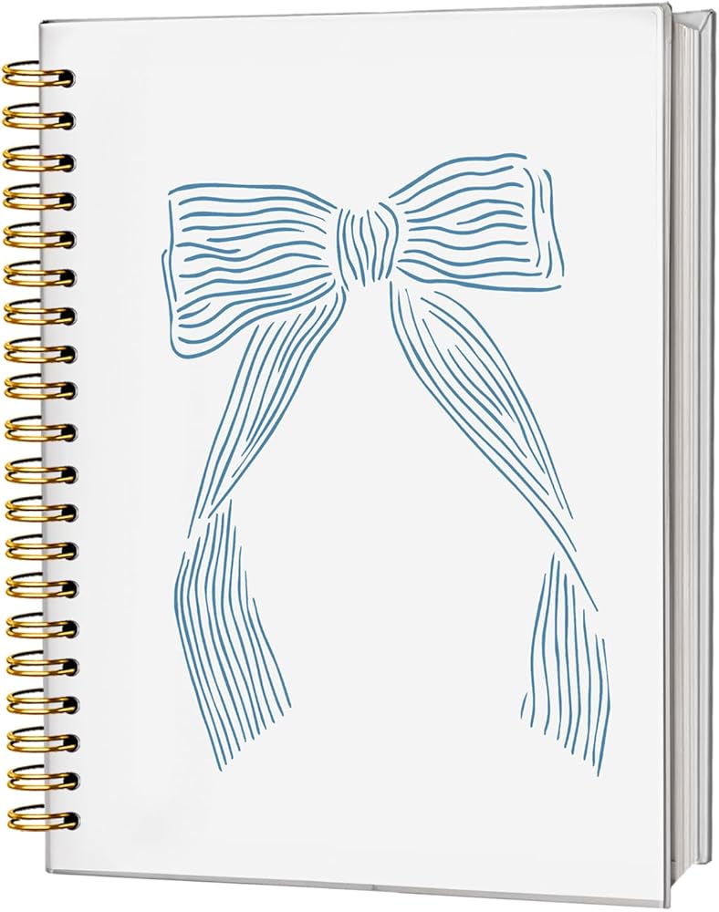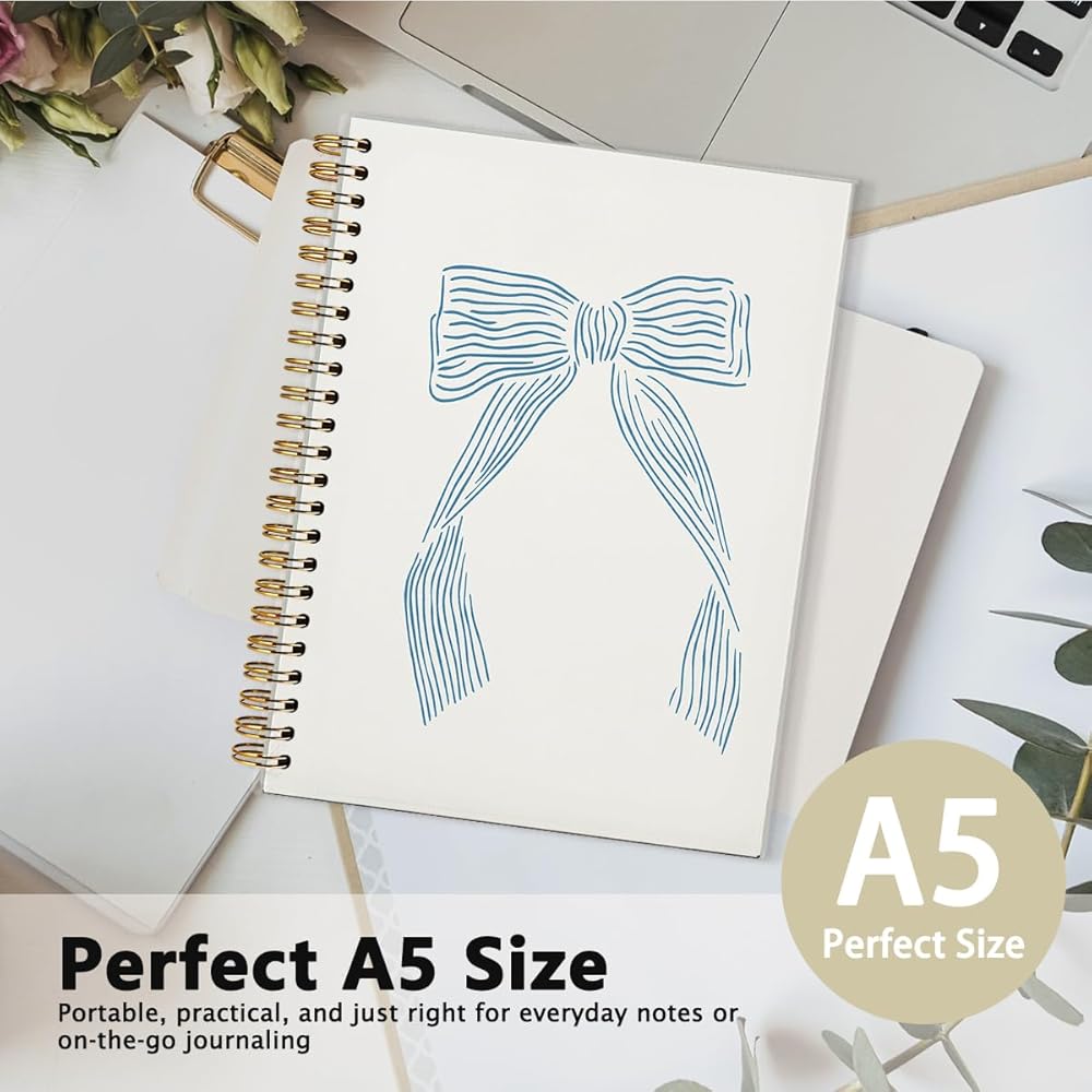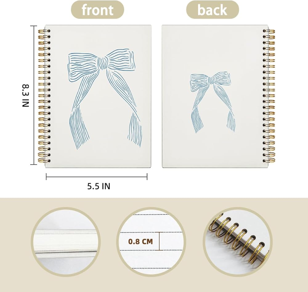 Cute Journal Blue Bow Notebook, Coquette School Supplies Spiral Notebook, Coastal Granddaughter Aesthetic Hardcover Spiral Notebook Journal for Work Notes Journaling, Coastal School Supplies 5.5x8.3