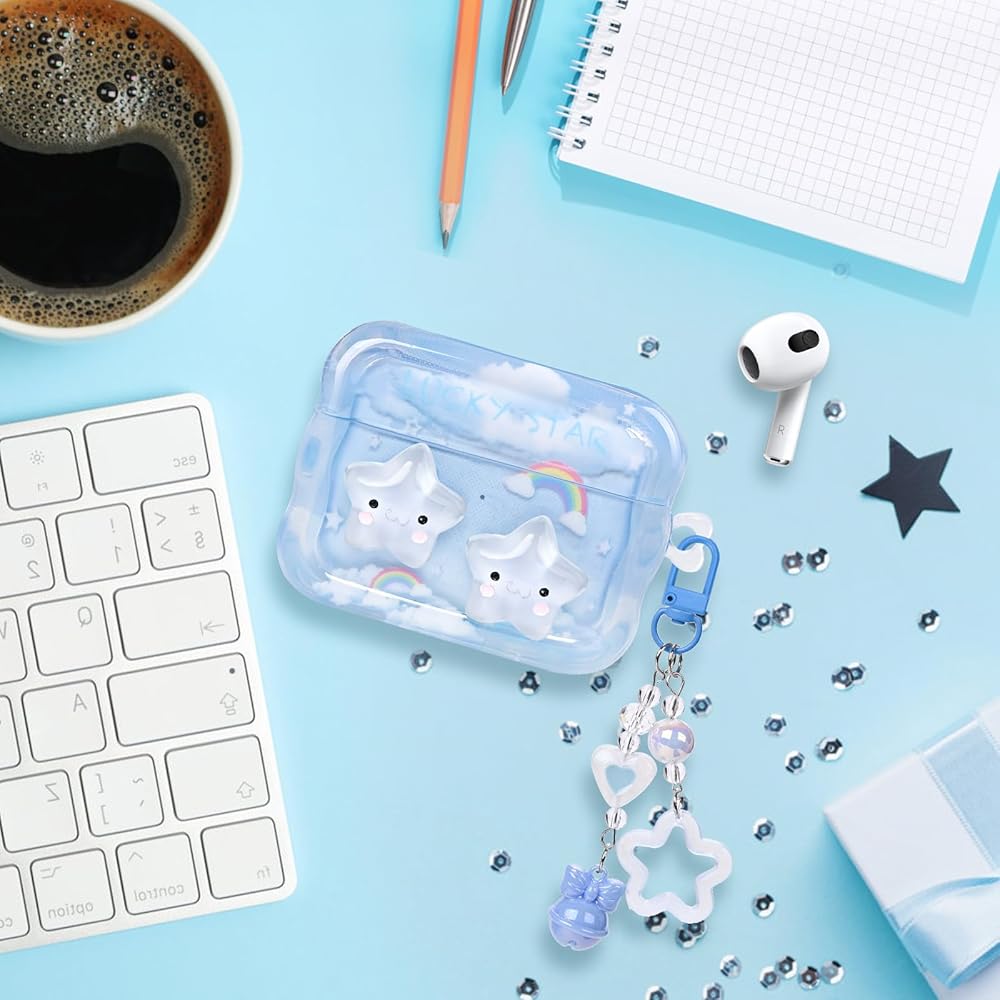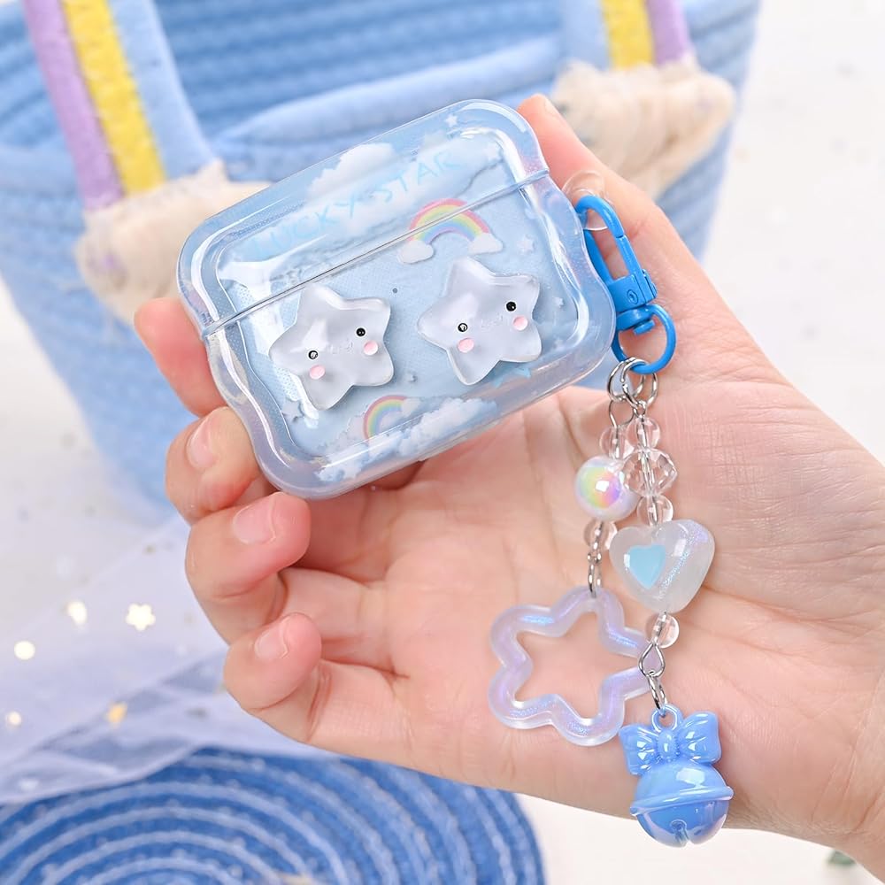 حافظة Airpod الجيل الثالث لطيفة مع سلسلة مفاتيح على شكل قلب الحب متوافقة مع حافظة Kawaii Star Clear Airpods 3 للنساء والفتيات