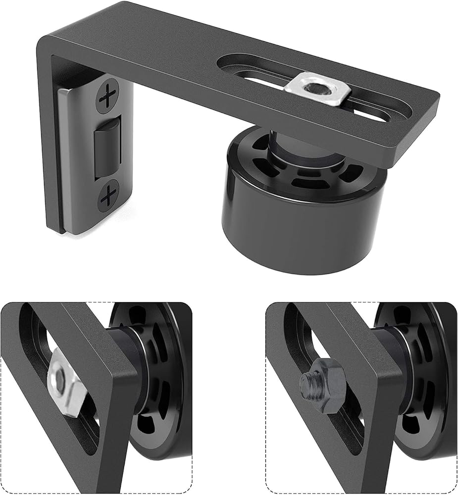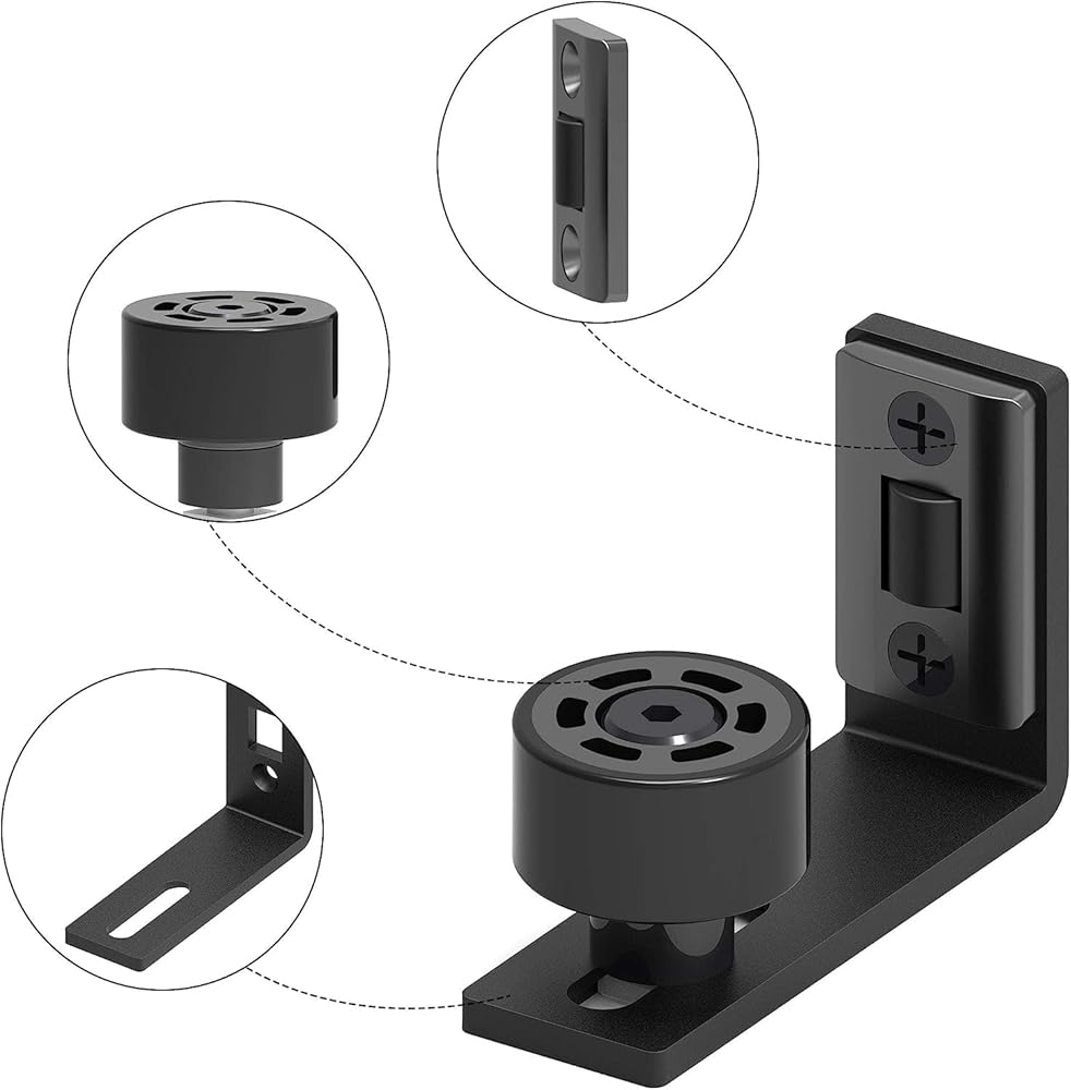 Easy to Install: Mount to the wall with screws, and no groove required for door. By adjusting the main roller in the track to fit your door panel; No need to drill holes in the floor.
