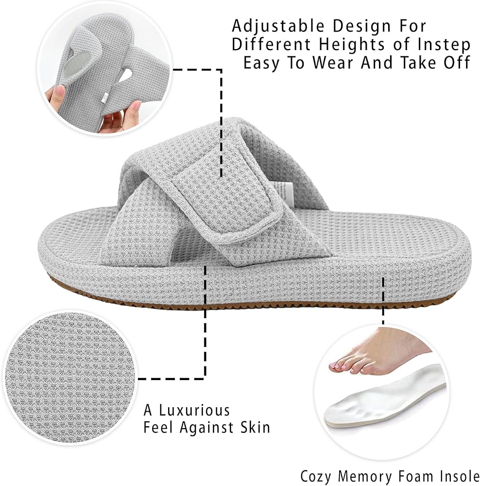Adjustable Fit for Ultimate Comfort: The slippers feature an adjustable design, allowing you to customize the fit according to your swollen feet or specific comfort needs. This ensures a perfect fit, providing maximum comfort and support.
