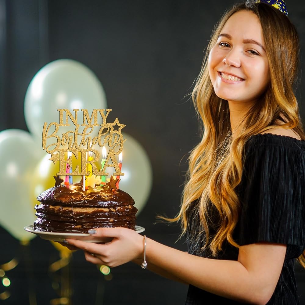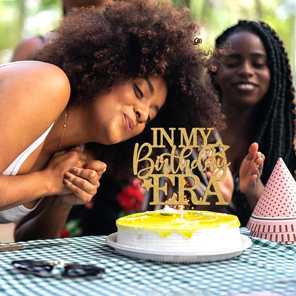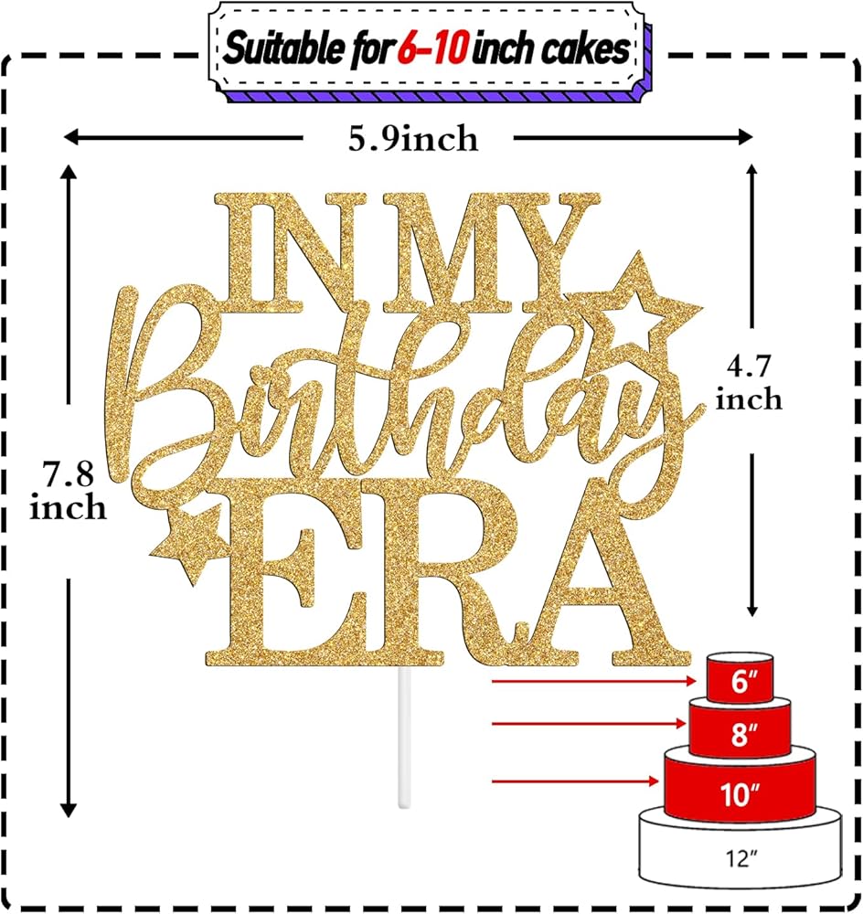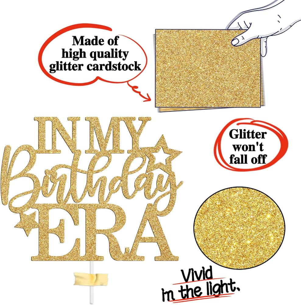 In My Birthday Era Cake Topper,Anniversary Celebration Party Decoration/It's My Time/Bday, Funny 16th/18th/21st/30th/40th/50th Birthday Party Decorations Supplies for Boys Girls, Gold Glitter