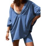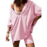 • Sweatshirts: Baggy tops for women, deep v neck, flowy short sleeve shirts, reversible, split side seam, loose fit silhouette