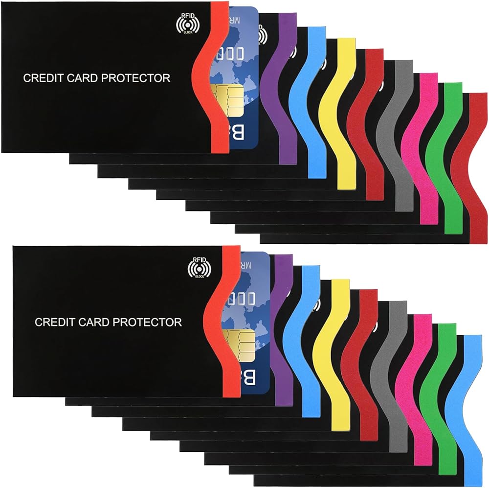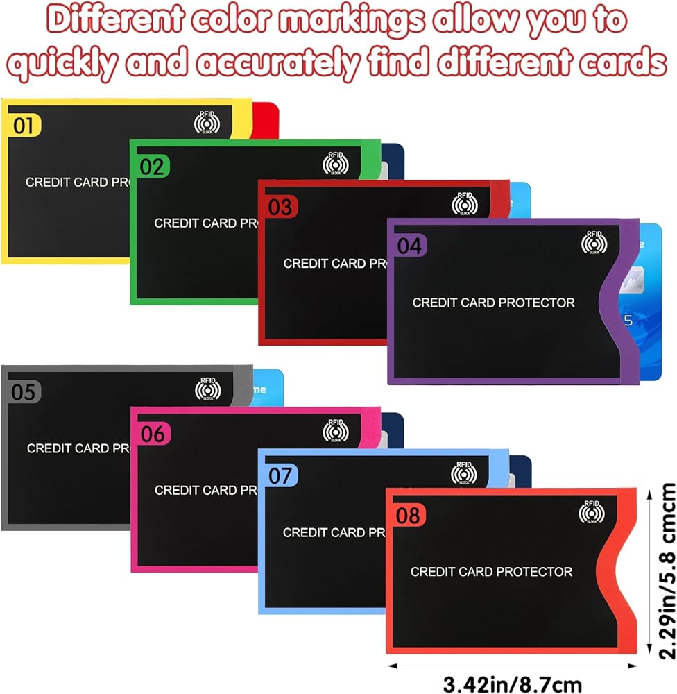 [Package Included] You will receive 18 credit card protector RFID blocking sleeves. This number is enough for everyday use of credit cards and travel documents. Besides, there are different color designs on the top of the card holder to differentiate between different cards and documents.