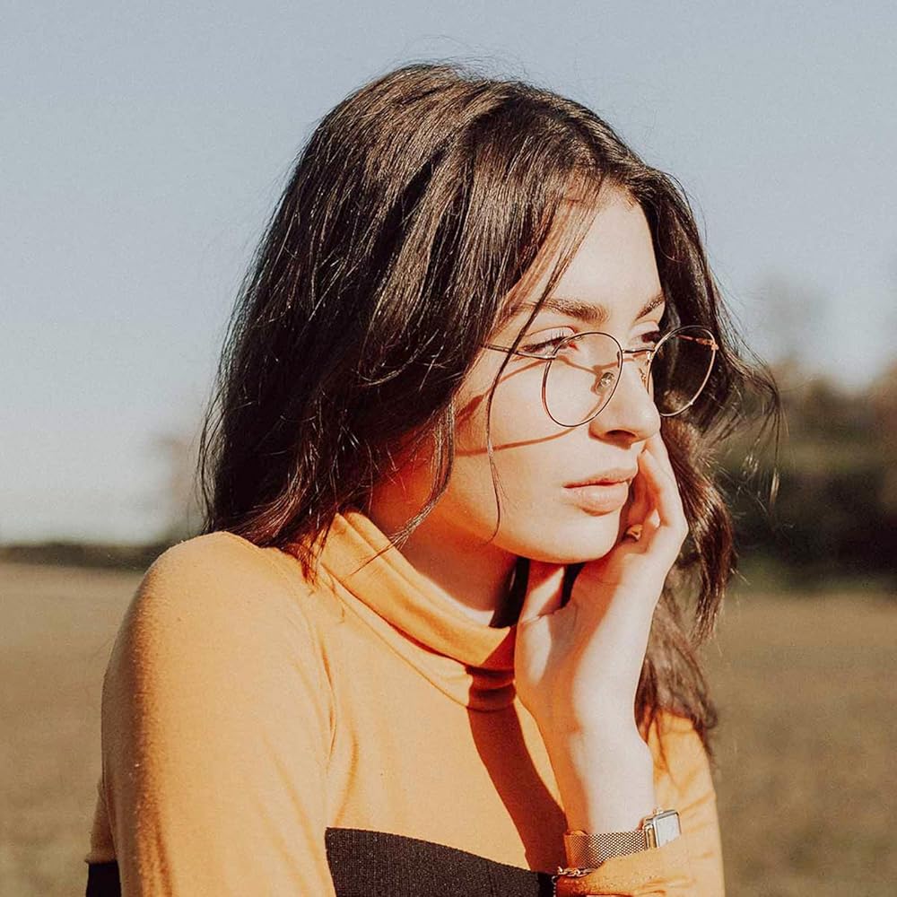 【Design】- TIJN's blue light filter glasses, featuring roundish lenses and a modern round metal design within a full-rim frame, craft a retro chic look that effortlessly elevates your personality.