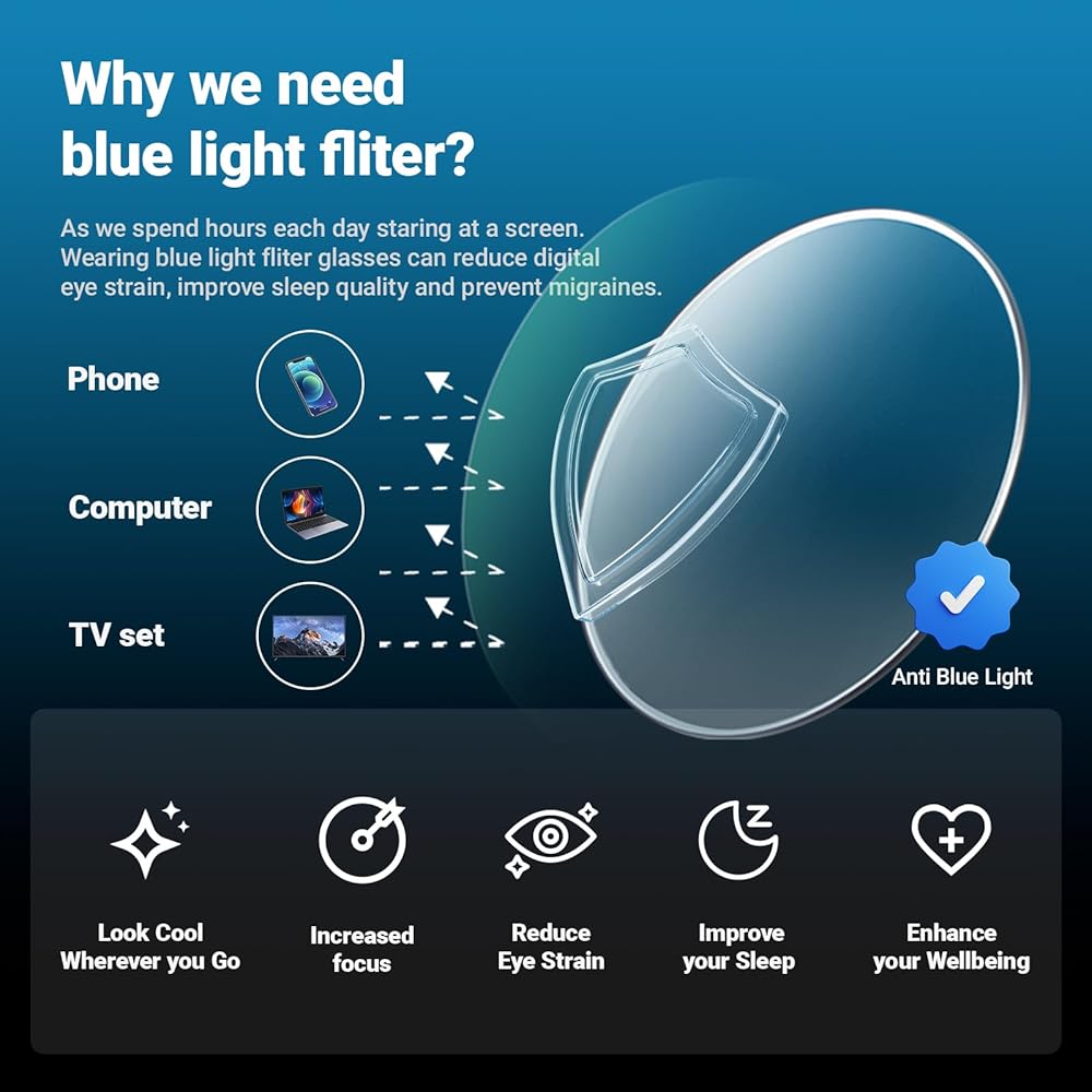 【Blue Light Blocking】-TIJN Blue Light Glasses feature advanced filtering lenses that block 99% of harmful blue light, reducing eye strain from TVs, computers, and electronic devices.