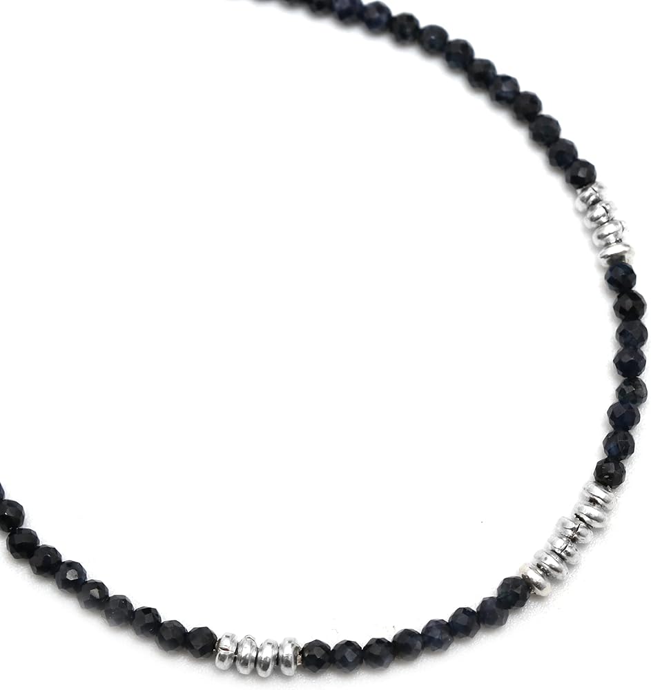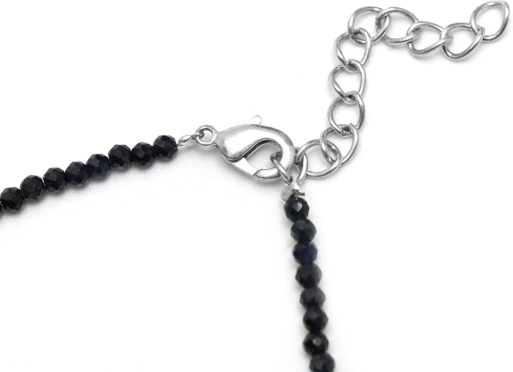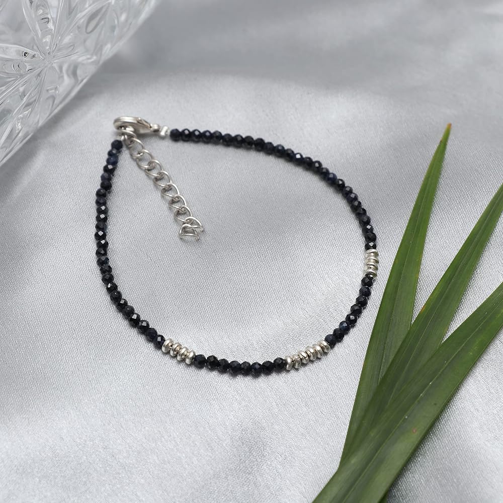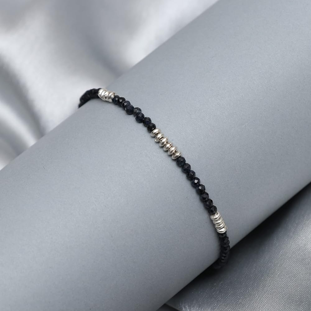Gempires Natural Black Spinel Beads Bracelet, Spinel Gemstone Jewelry, Gift For her, 7+1 inch Adjustable Silver plated Chain (Black Spinel)