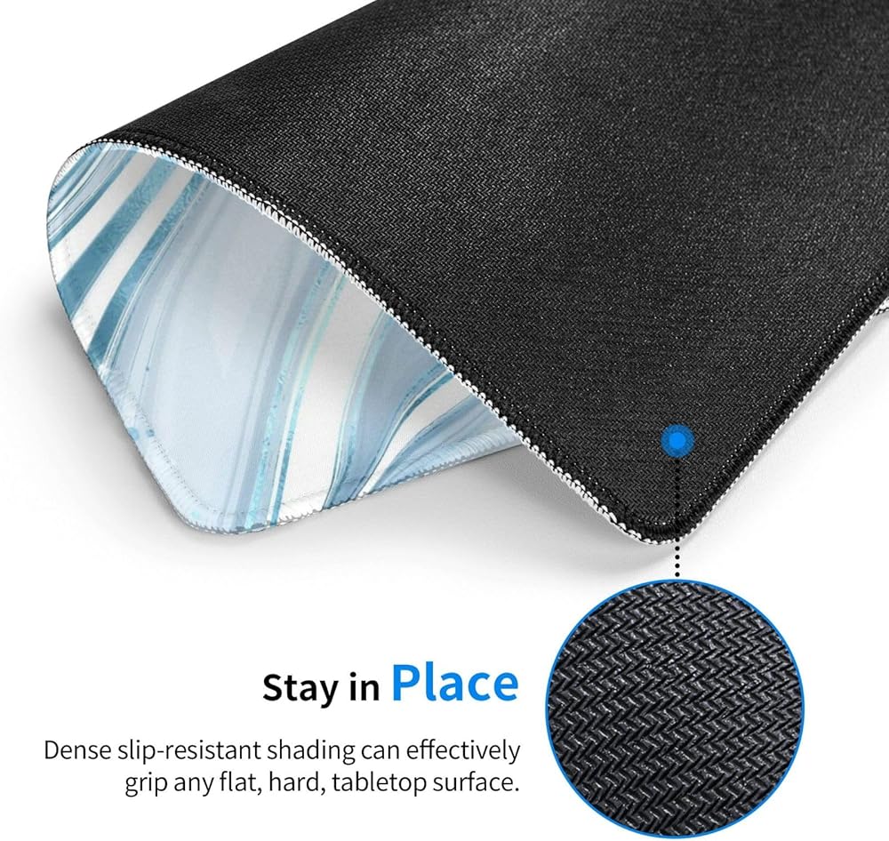 【Durable Non-Slip Base】 Crafted from resilient, heat-resistant polyester fabric, our mouse pad can withstand spills and mishaps. The non-skid natural rubber base ensures stability, preventing unwanted sliding. Easy to clean and maintain, it's a lasting addition to your setup.