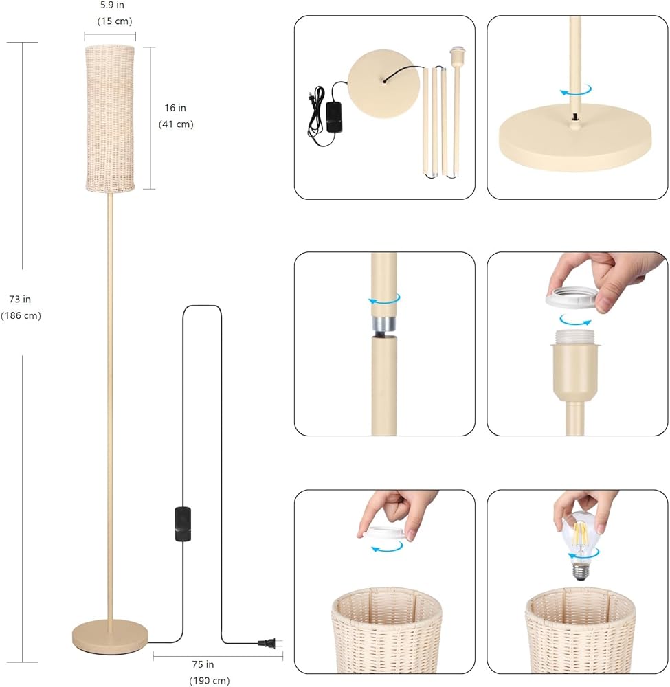 Item dimensions: 73 inches from bottom to top. The diameter of the lampshade is 5.9 inches. 5.9 ft cord with a dimmable switch.