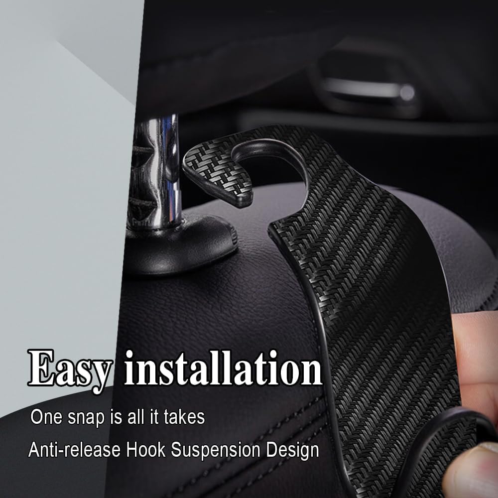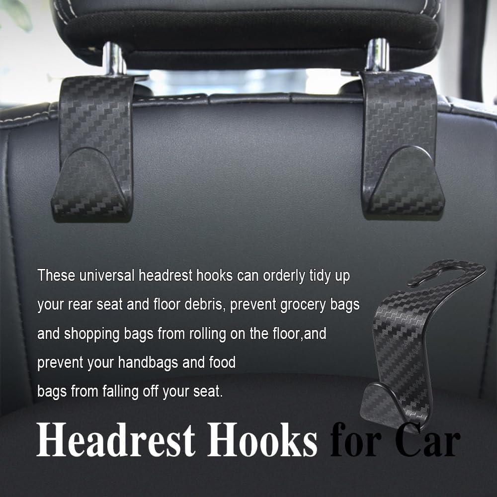 HAOBO 4PCS Car Seat Headrest Hook, Carbon Fiber Car Hook, Car Purse Hook, Back Seat Headrest Hanger, Universal Auto Car Back Seat Hook Organizer Car Interior Accessories for Handbag Purse Coat