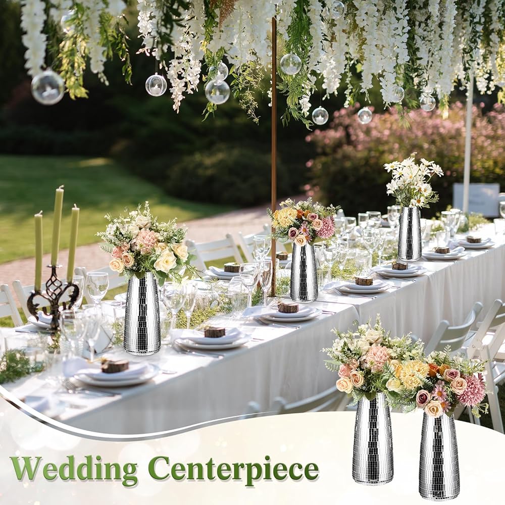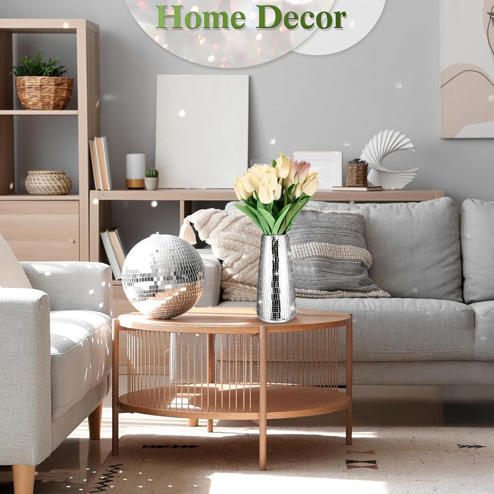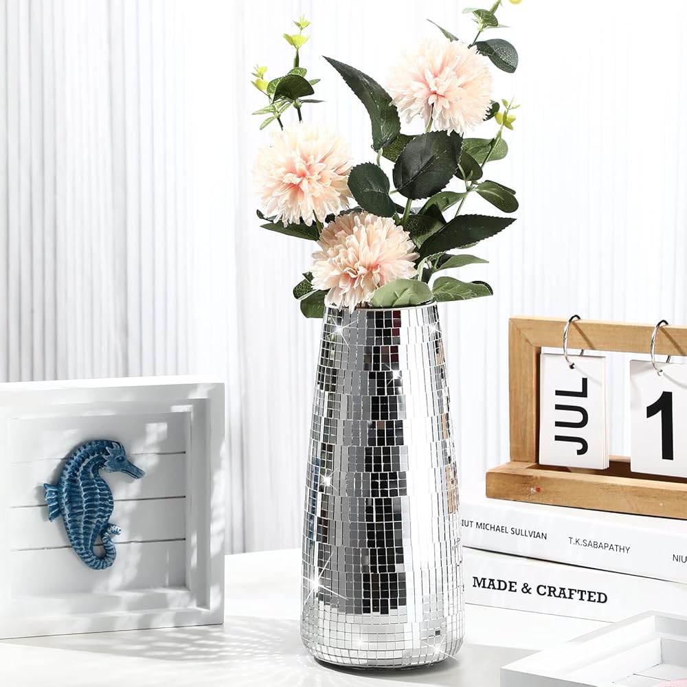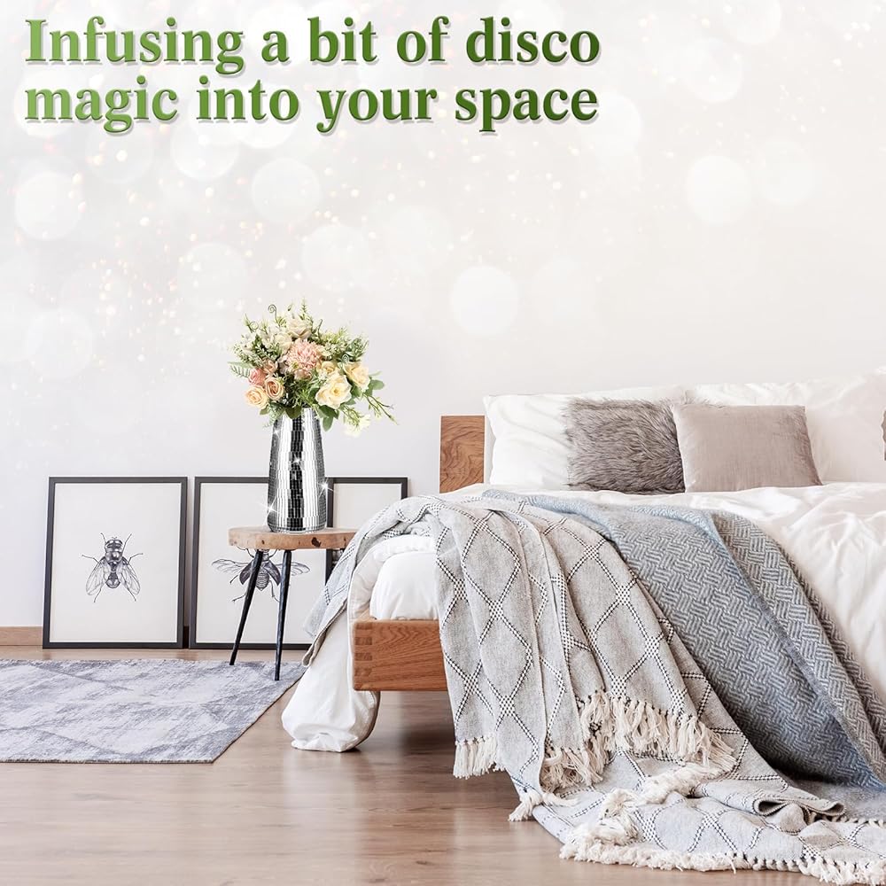 When sunlight or party lights spill onto this disco flower vase, a captivating light show unfolds, courtesy of its disco ball design and mirror tiles. The silver touch adds to the appeal, ensuring that this vase is not only a holder for your favorite blooms, but also a charming artifact that can be applied to enhance the ambiance at parties or gatherings.