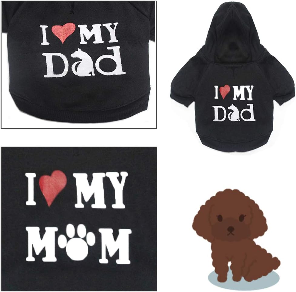 Size:XS,S,M,L | Style:I LOVE MY MOM/DAD Specifications: Type: Dog Clothes For Small Dogs Cats Pug Yorkshire Chihuahua Yorkies Clothing Autumn Winter Dog Puppy Outfit Coat Material: Cotton Special design: I love my Dad&I love my Mom Size from XS to L, suit for small and medium pets, eg: Chihuahua, Yorkshire, pug, teddy Wash Info:Use the cold water and hand-wash, machine washable the sweater should be stored in dry and ventilated room environment and when it's not needed in a certain time Package Include: 2 x Pet Clothes