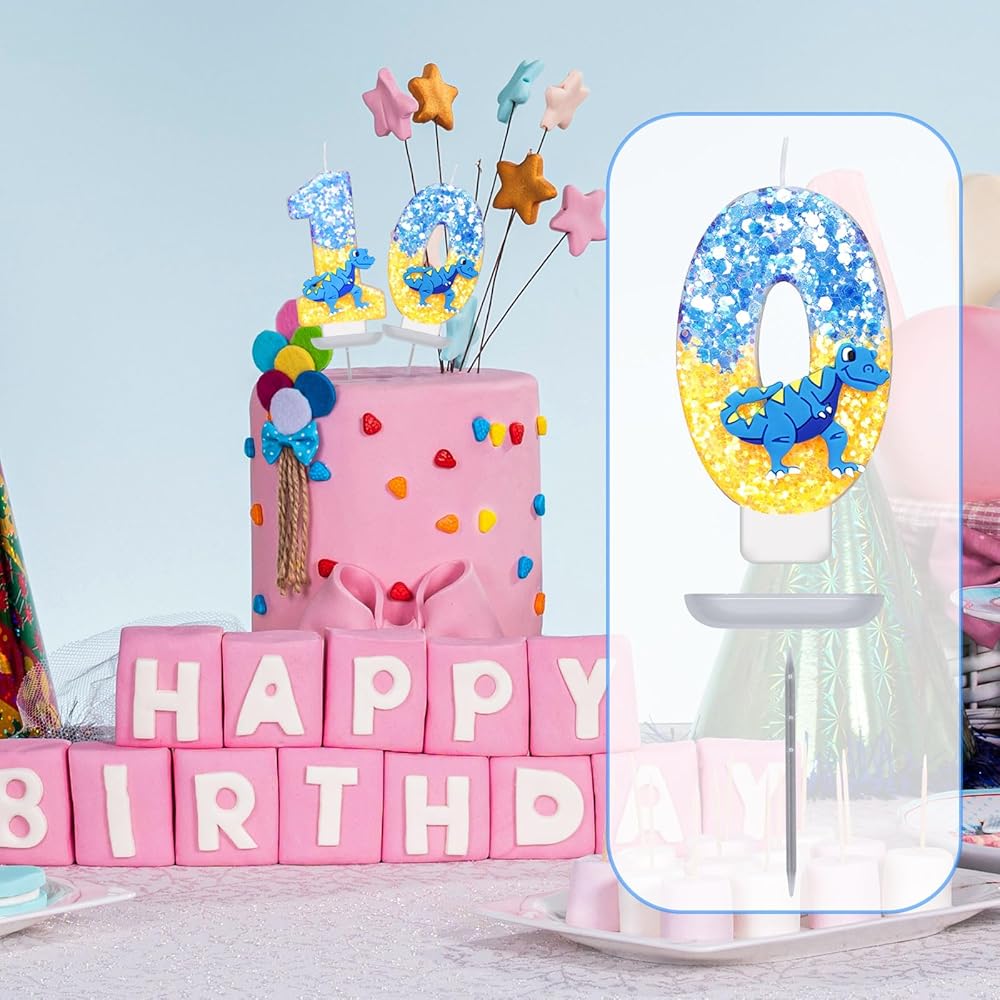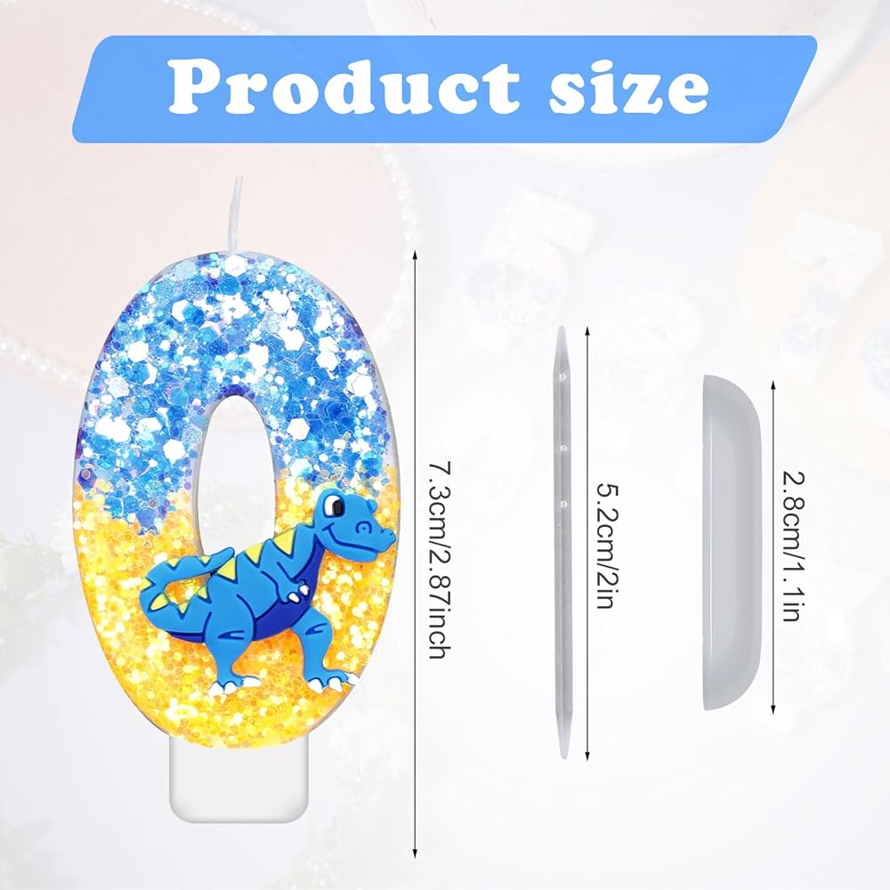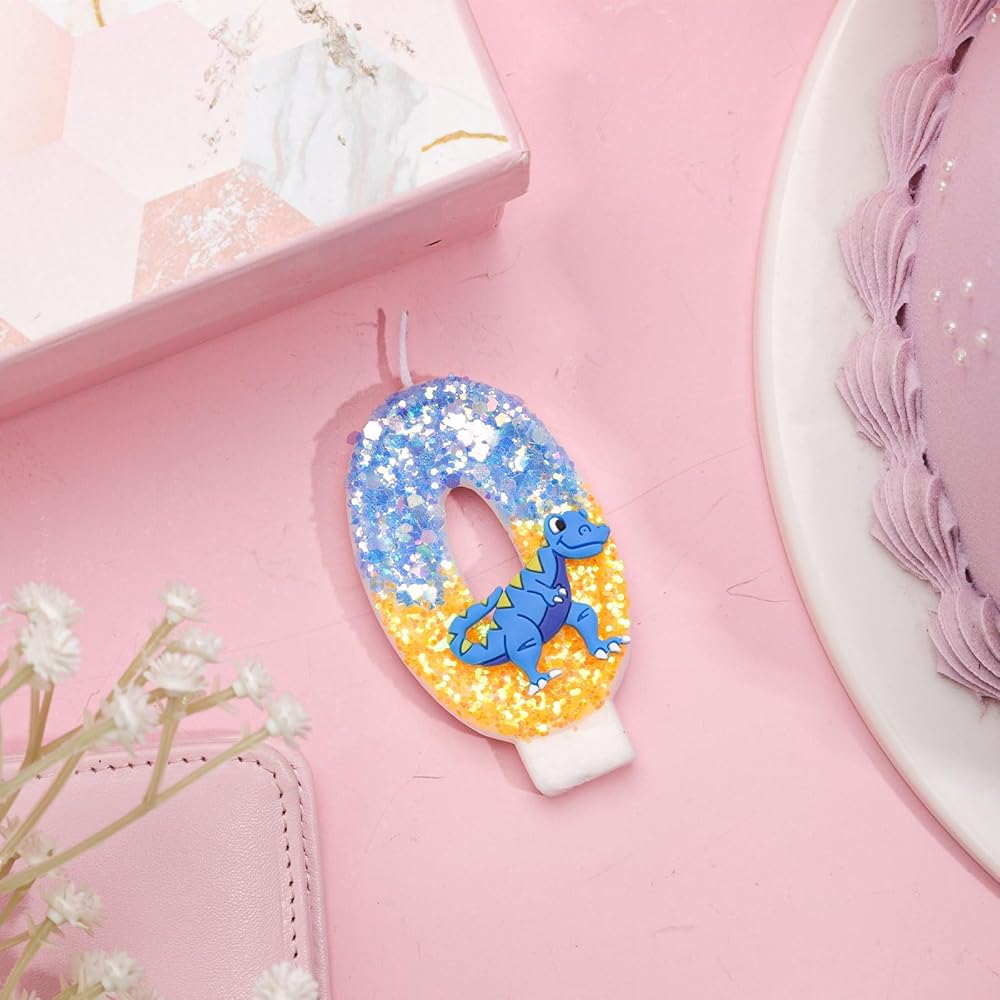 Dinosaur Birthday Candle, 2.87 Inch Birthday Number Candles Sequins Cake Topper Candle 3D Number Candle for Dinosaur Theme Party Birthday Decoration Supplies(Number 0)