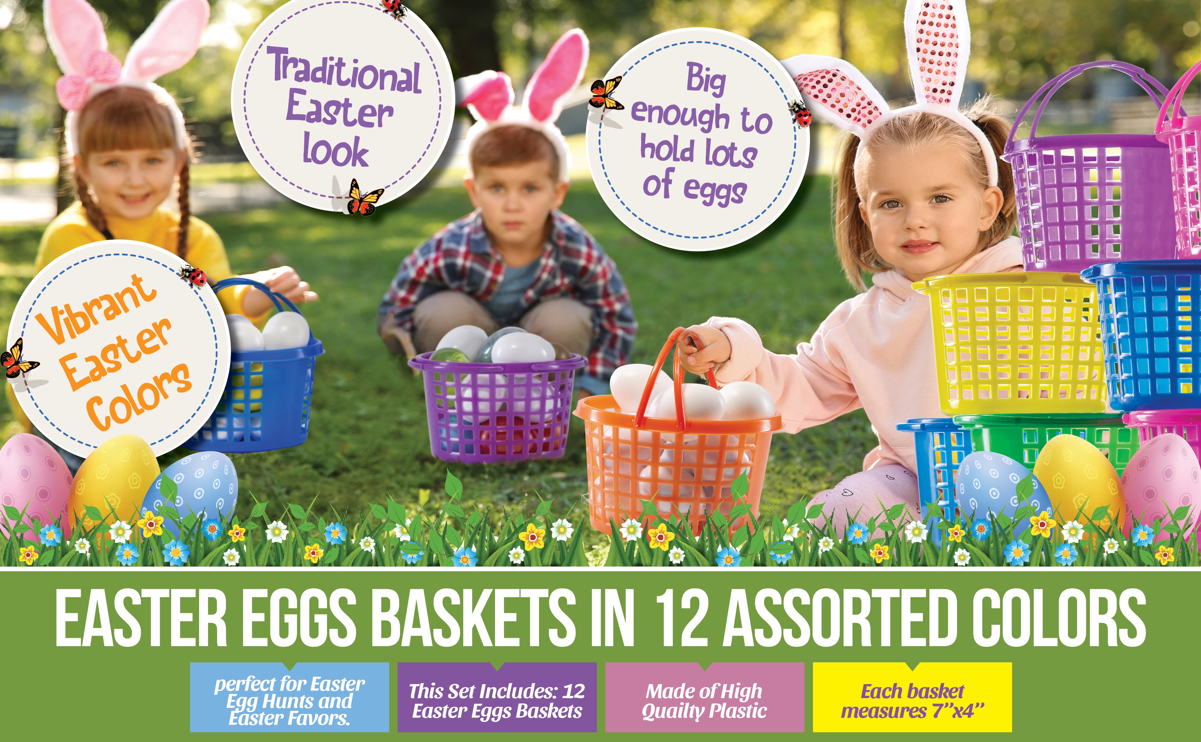 Package Quantity: the package comes with 12 Easter baskets for kids, in 6 colors - pink, green, purple, yellow, orange, and blue!