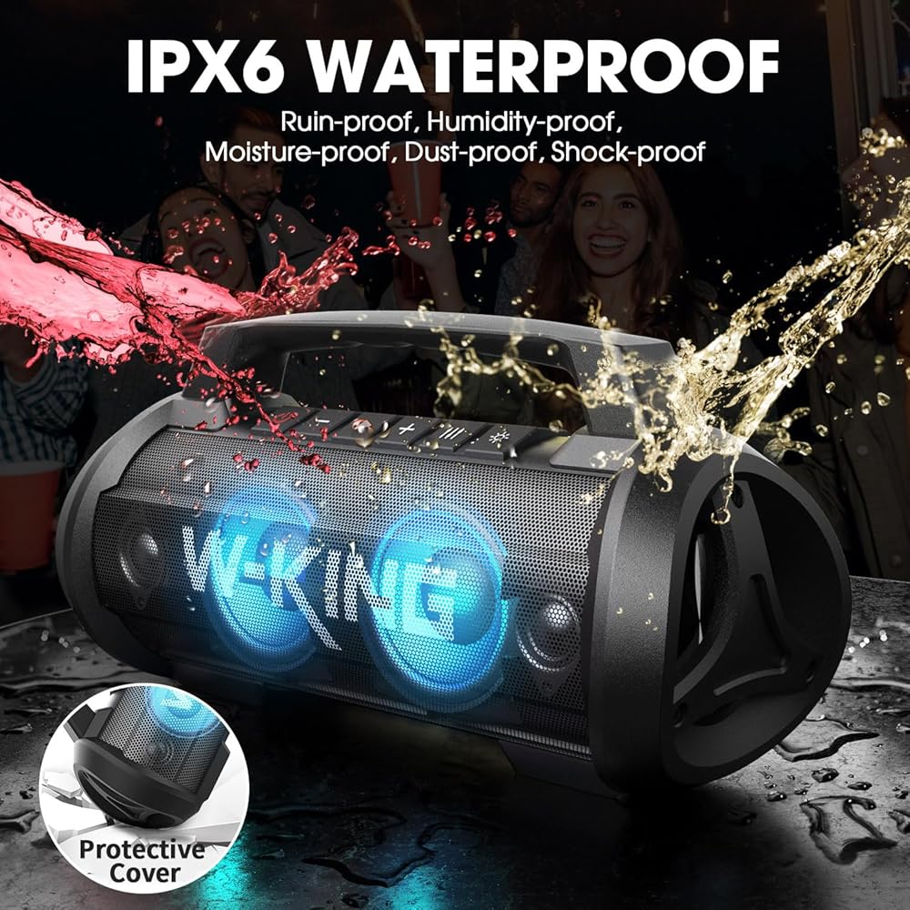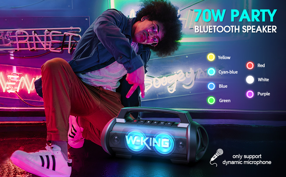 70W Loud Bluetooth Speaker Wireless, W-KING Outdoor Portable Speaker Bluetooth Waterproof with Lights, IPX6/Heavy Bass/Stereo Pairing, Party Bluetooth Speakers Hifi Mic Slot/42H Play/Power Bank/TF/AUX