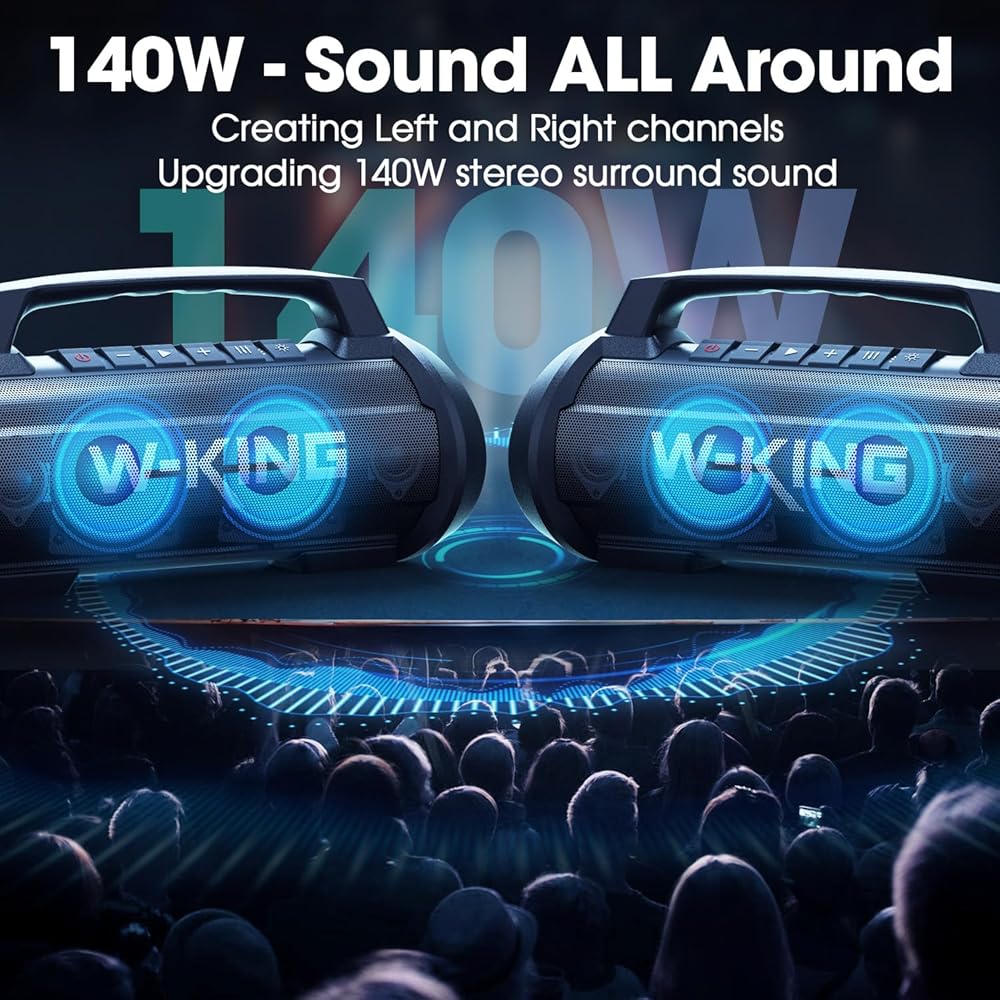140W SUPER STEREO PAIRING & KARAOKE MACHINE: Easy pairing of two D10 portable bluetooth speakers to create both left and right channel systems go crazy, the 140W ultra-stereo surround sound immediately invades your hearing, and your heart beats wildly with the double bass sound. The wireless bluetooth speaker also has a microphone jack (0.25") to allow singing Karaoke (Only Support Dynamic Microphone). Sing solo, share a duet, or rap battle for the title of Karaoke King.