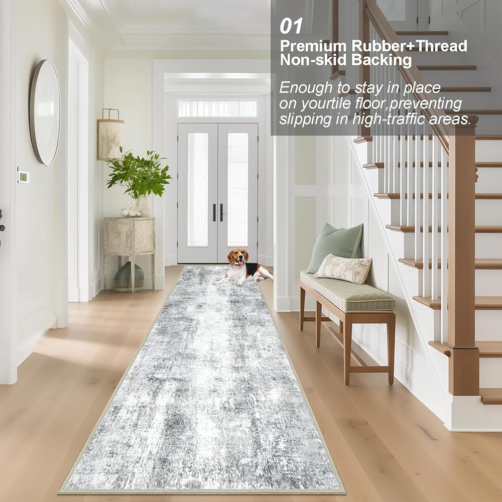 [Non Slip Runner Rug]:Rug runners for hallways non slip featuring a Rubber+Thread backing,securely grips onto tile floors without the need for additional carpet pads,even with your elderly pets running around,these non-slip carpets stay firmly in place.Runner rug for bedroom,kitchen,bathroom,and laundry.