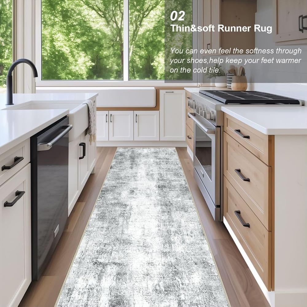 [Thin & Soft Runner Rug]:The hallway carpet has a thickness of 0.35 inches,it does not obstruct door movement while providing an attractive floor covering,enhancing hallway ambiance and reduces noise.You can feel the softness through your shoes.You'll fall in love with this floor runner.