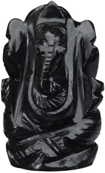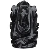 Natural Black Agate Gemstone Ganesha Statue Sculpture Sign of Success and Good Luck.