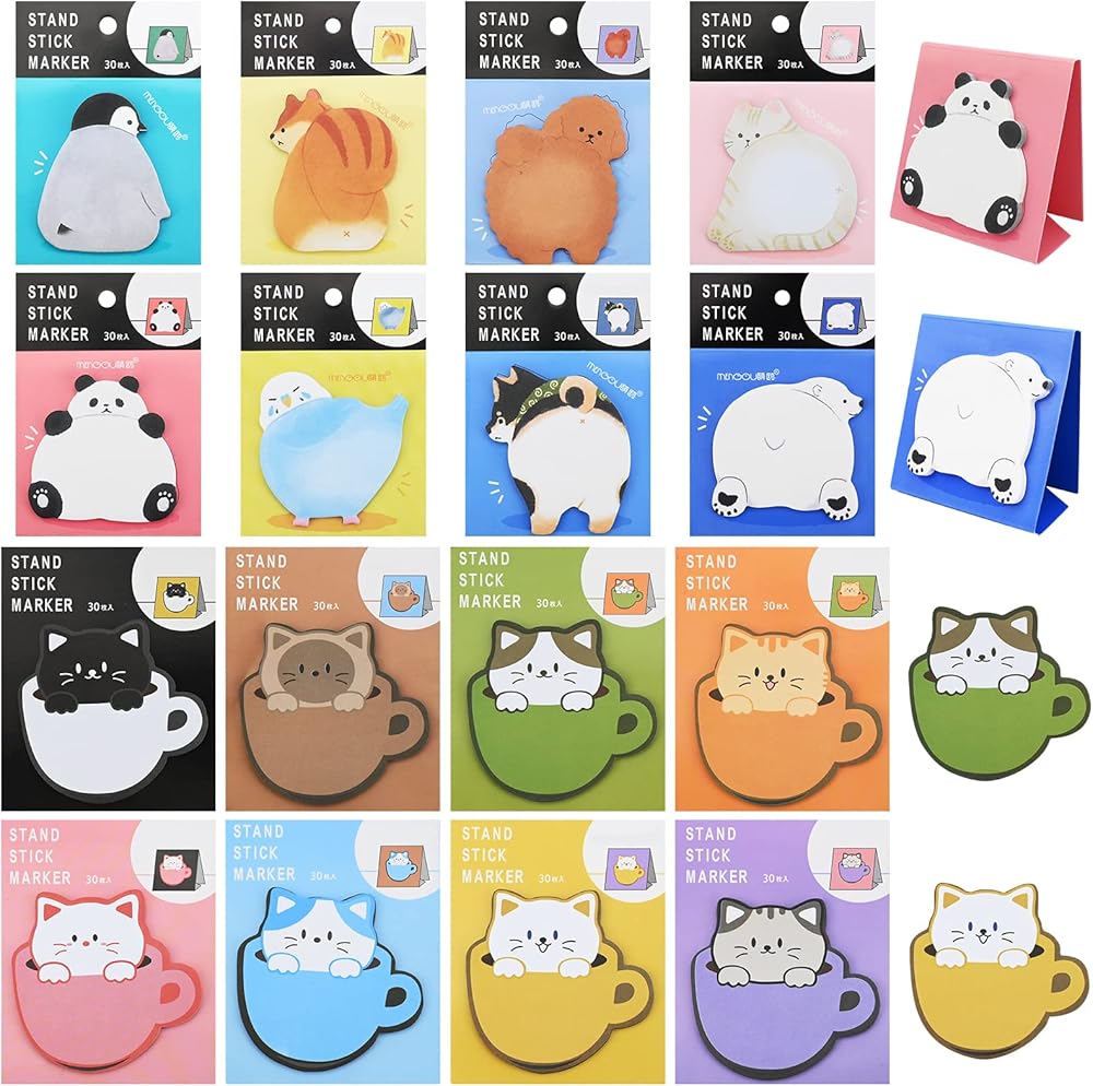 16 Pads Creative Sticky Notes, Cute Animal Note Book Set, Note Paper Tearable Small Book Memo Sticky Notes Book Tabs, Writable and Pasteable Note for School, Office